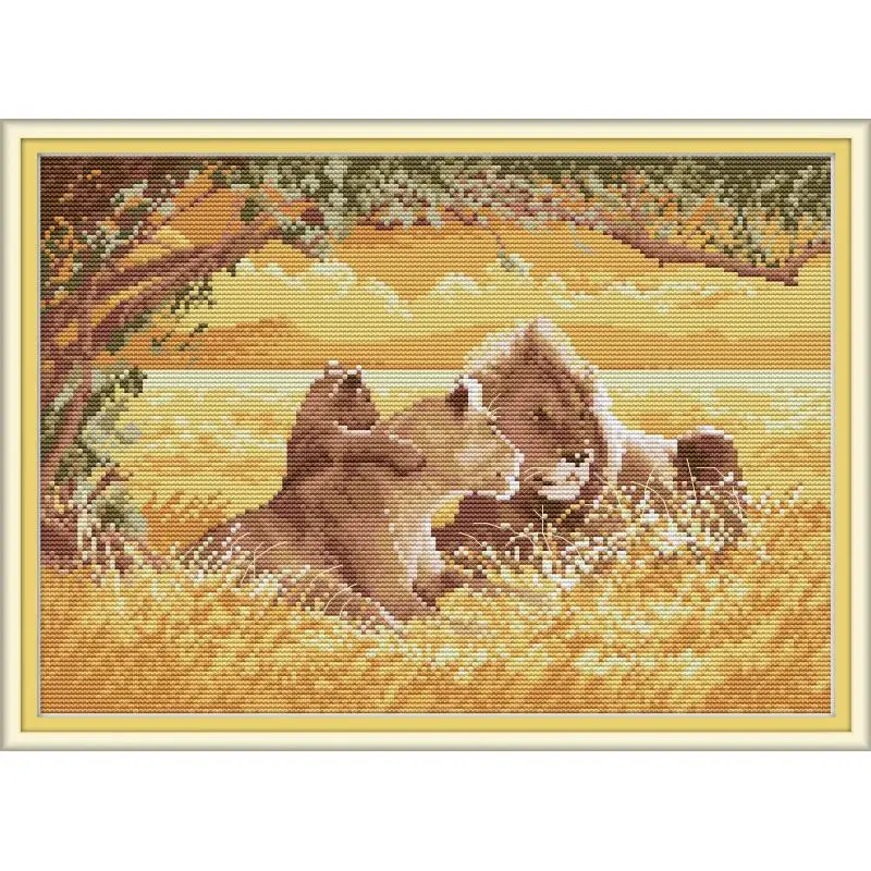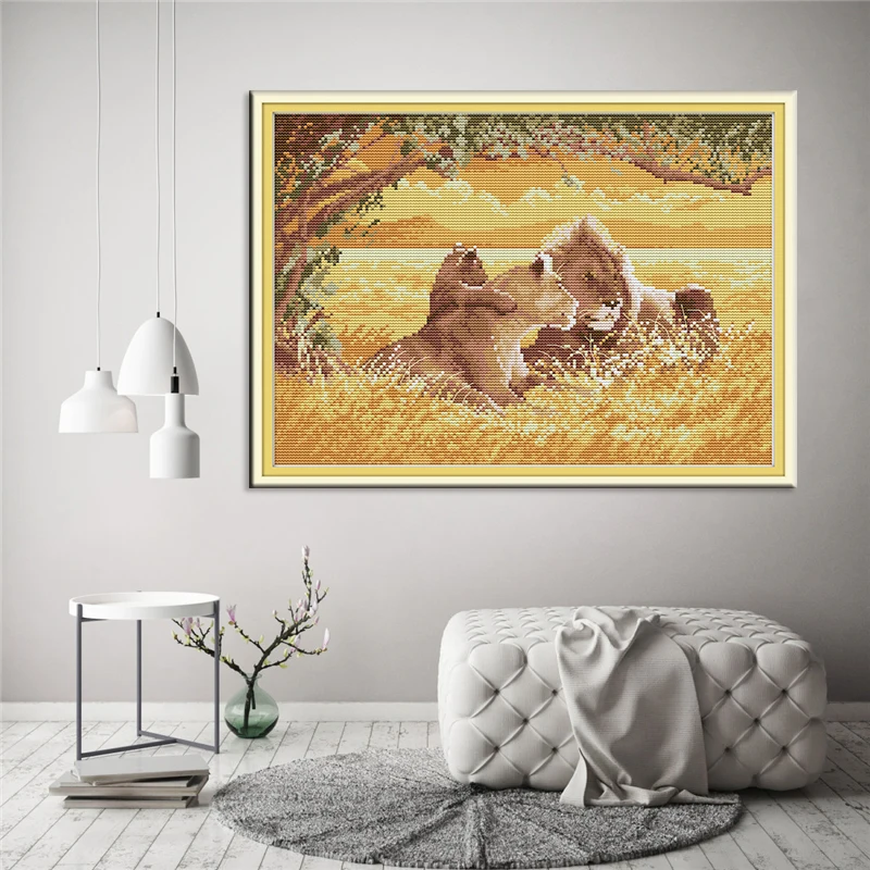 Набор для вышивки крестиком Joy Sunday Семья льва, Набор для вышивки крестиком с рисунком Canva 11 и 14CTCloth, рукоделие