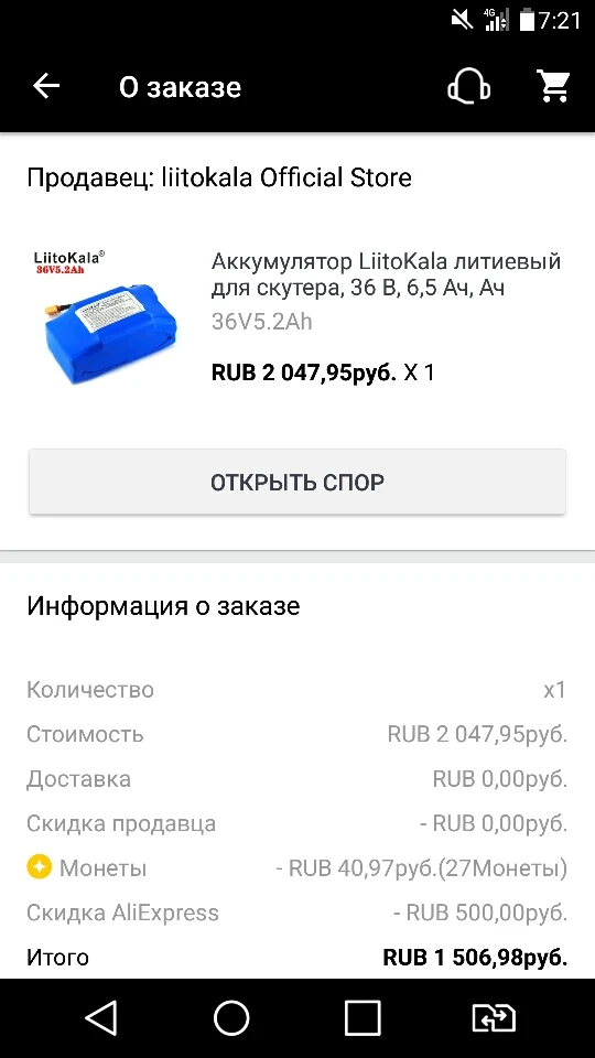 Страна: RU Color: 36V5.2Ah Доставка: Seller's Shipping Method 01.03.2021