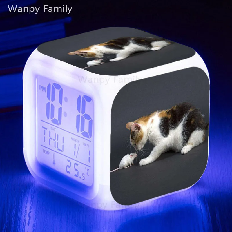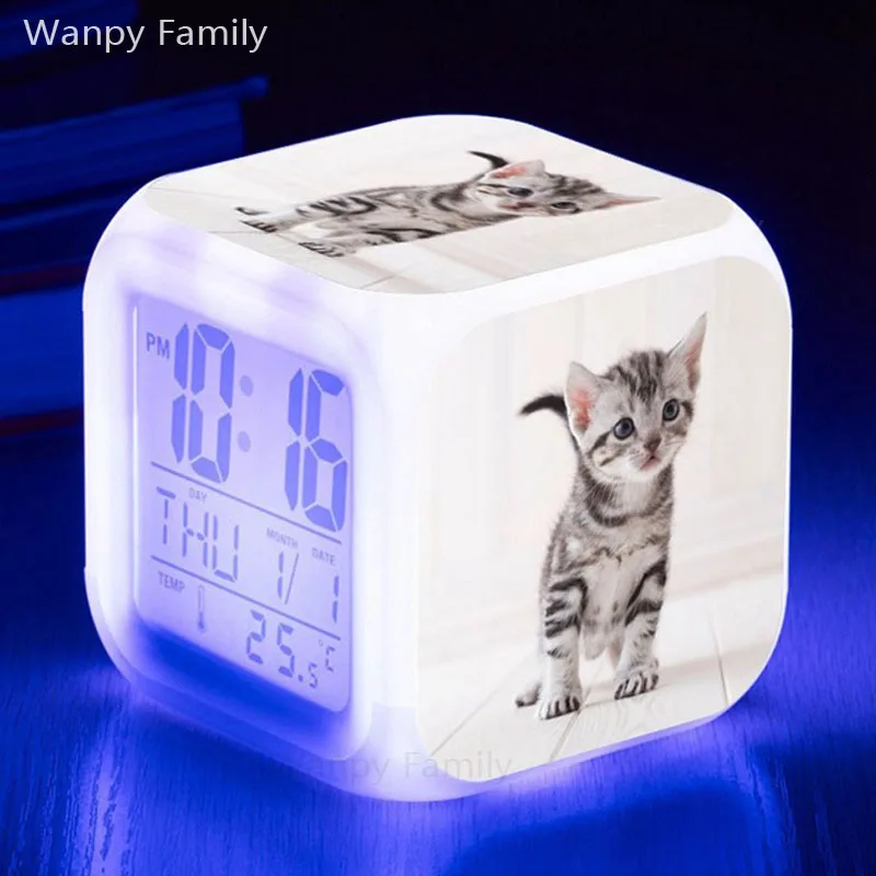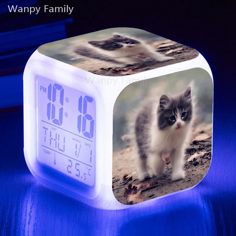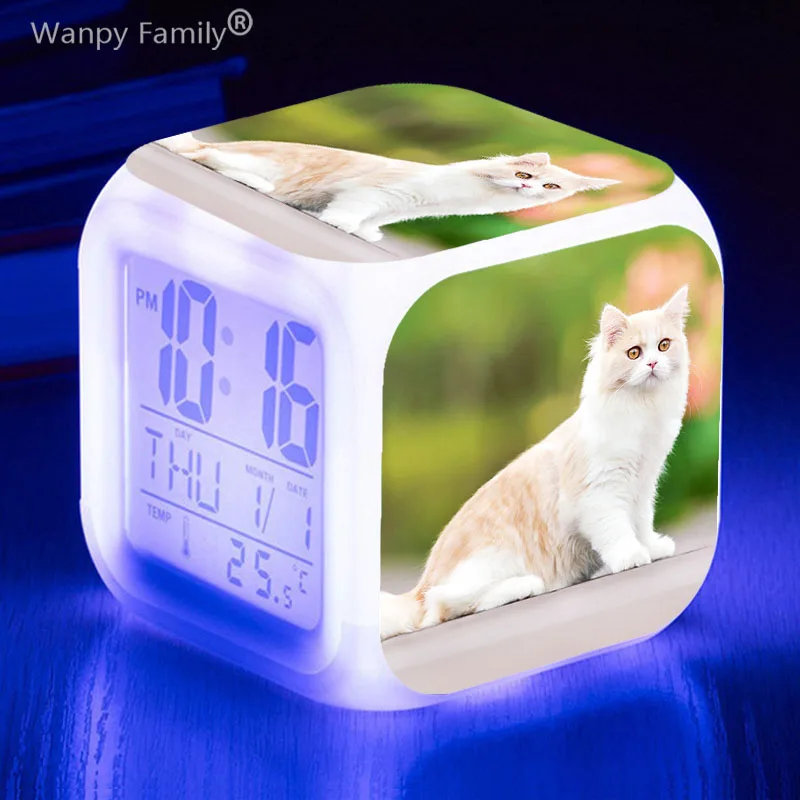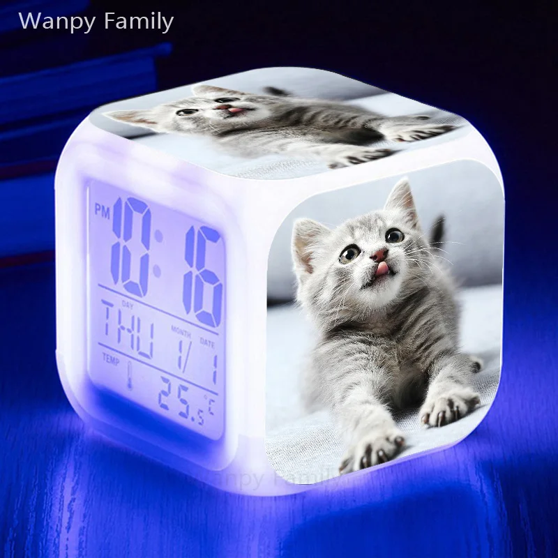 Симпатичный кот Будильник 7 цветов Светящиеся СВЕТОДИОДНЫЕ цифровые...