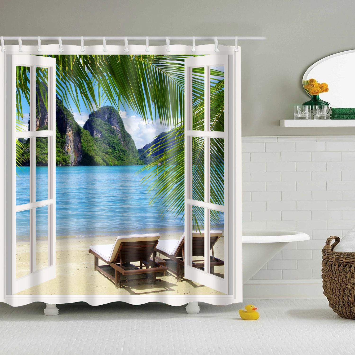 Голубое небо морской пейзаж фальш окно душ Шторы мыть Ванная комната душа Водонепроницаемый с защитой от плесени декор с Крючки 180x200 см большого размера