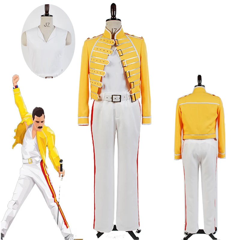 Сценический костюм Queen Lead Freddie Mercury wэмблей на сцене для мужчин и женщин для косплея желтая куртка белые брюки костюм на Хэллоуин полный комплект
