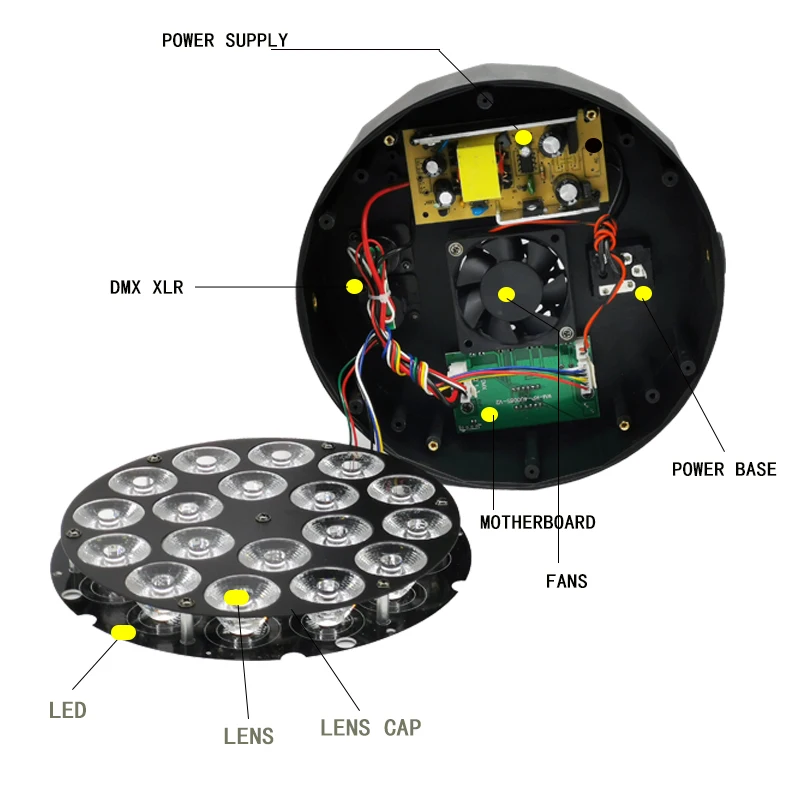 Сценический светодиодный светильник 18x12 Вт, RGBW, 4 в 1, аксессуары для самостоятельной сборки