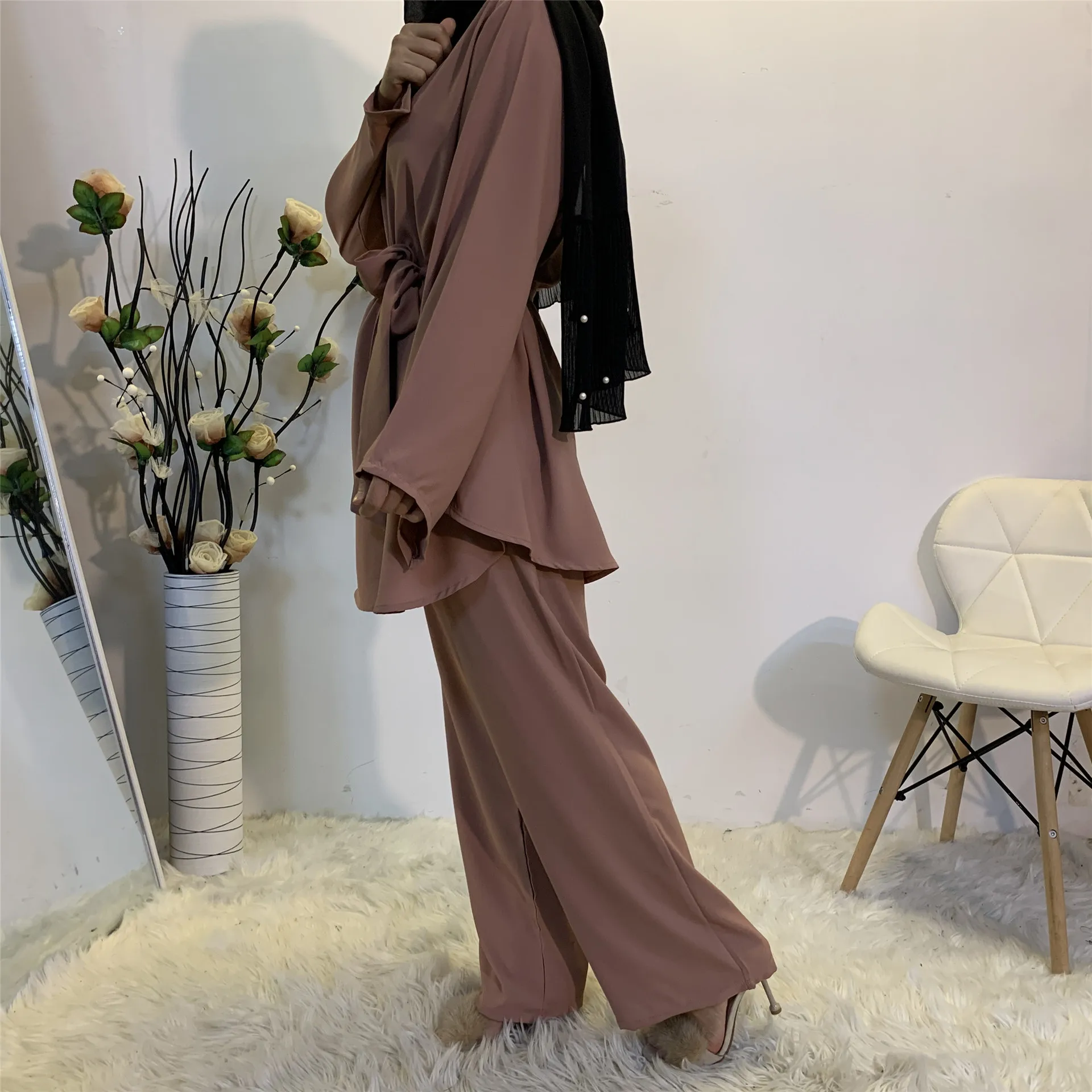 качество этого шифонового комплекта супер! цвет пыльной розы максимально прелестный…размер М на 46 российский сильно в облегон (брюки), хотелось бы посвободнее, но сама туника просто идеальна и прикрывает бёдра, что спасает ситуацию