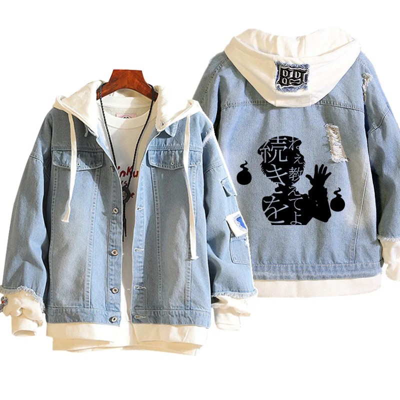 Мужские и женские осенние джинсовые пальто с капюшоном с аниме Akat...