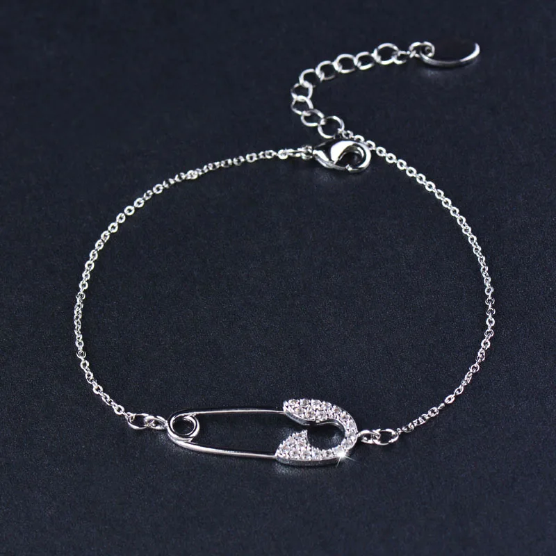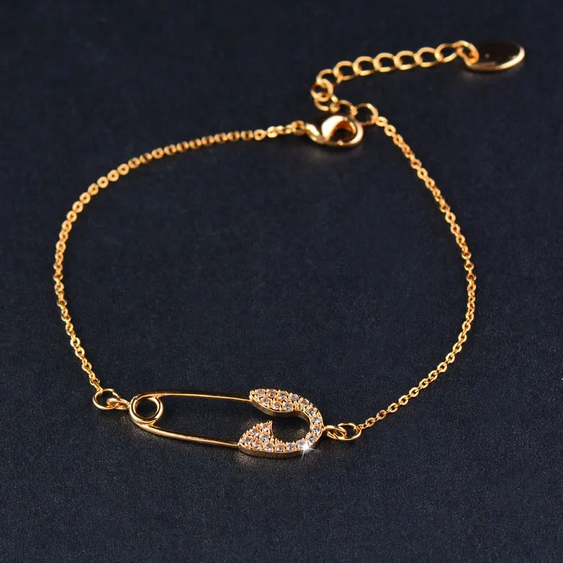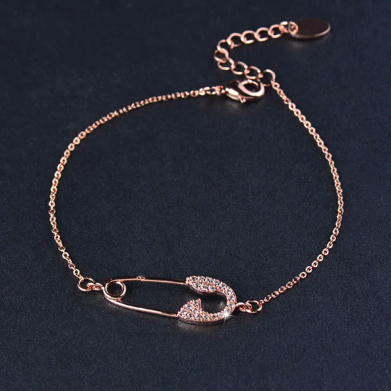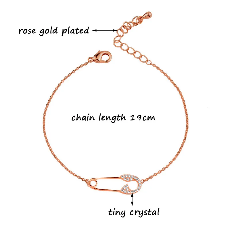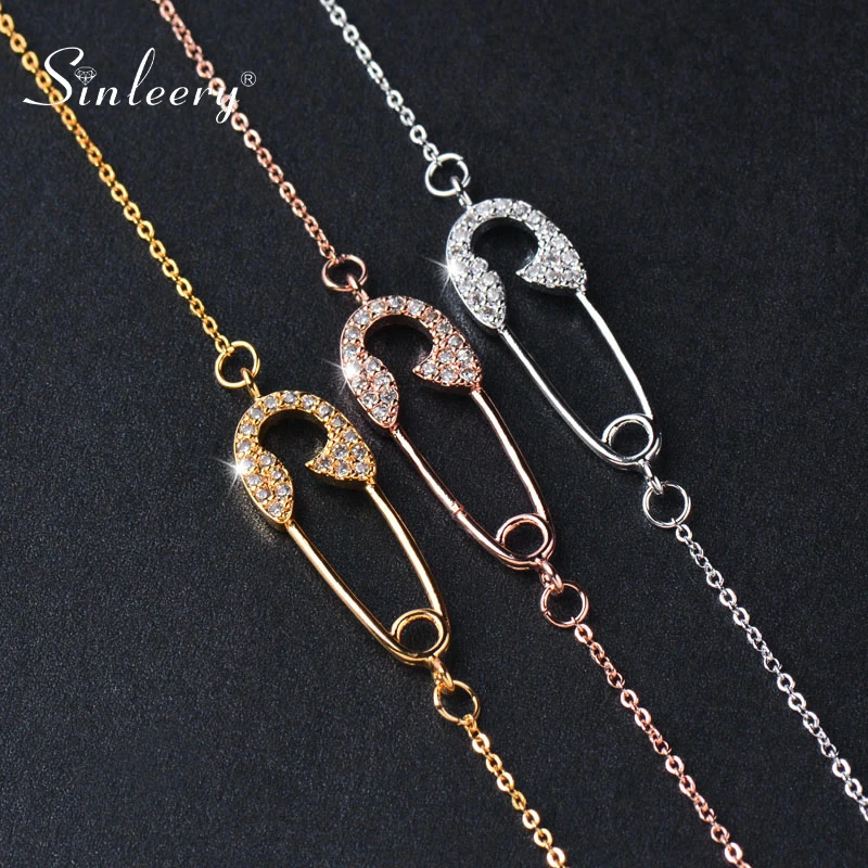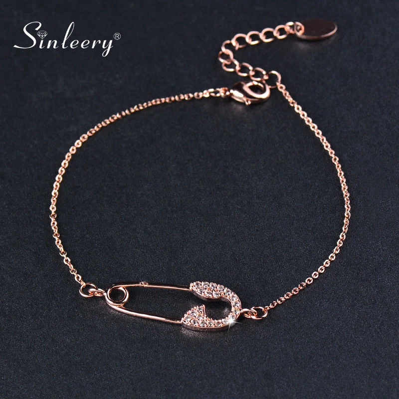SINLEERY, блестящий браслет в форме булавки, розовое золото, серебряный цвет, цепочка, маленький хрустальный браслет дружбы, Женские Ювелирные изделия SL032 SSK