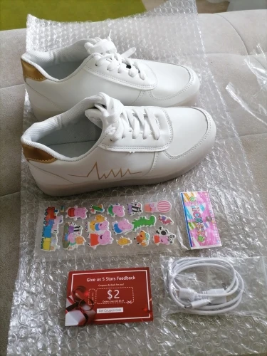 Описание статьи хорошее, обувь очень красивая, время работы, когда батарея полностью заряжена, хорошее, +/- 9h. Супер быстрая доставка, упаковка, как описано (без коробки), но прибыл в хорошем состоянии. Я удаляю звезду, потому что мне кажется, что качество ПУ низкое, круги, чтобы пройти шнурки, уже растягиваются, когда я затягиваю обувь. Чтобы увидеть в долгосрочной перспективе. Я все еще рекомендую, потому что соотношение цена/качество/доставка действительно правильное, дети очень счастливы. Спасибо продавцу.
