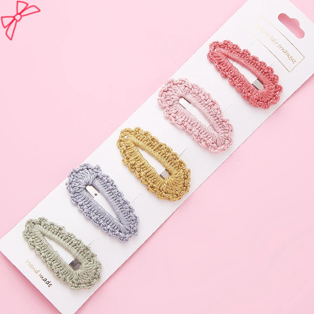 Красочные шерстяные заколки для маленьких девочек, заколки для волос с кружевной отделкой, заколки карамельных цветов, головной убор, вязаные аксессуары для волос для детей