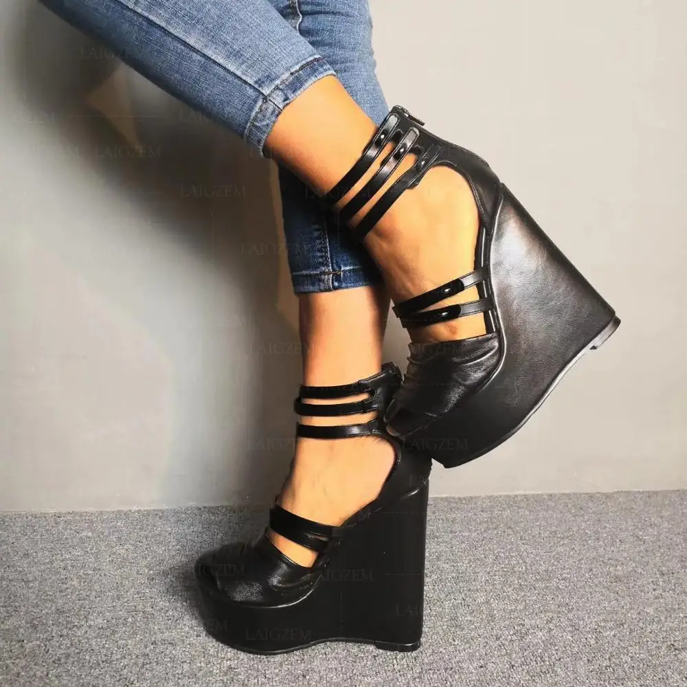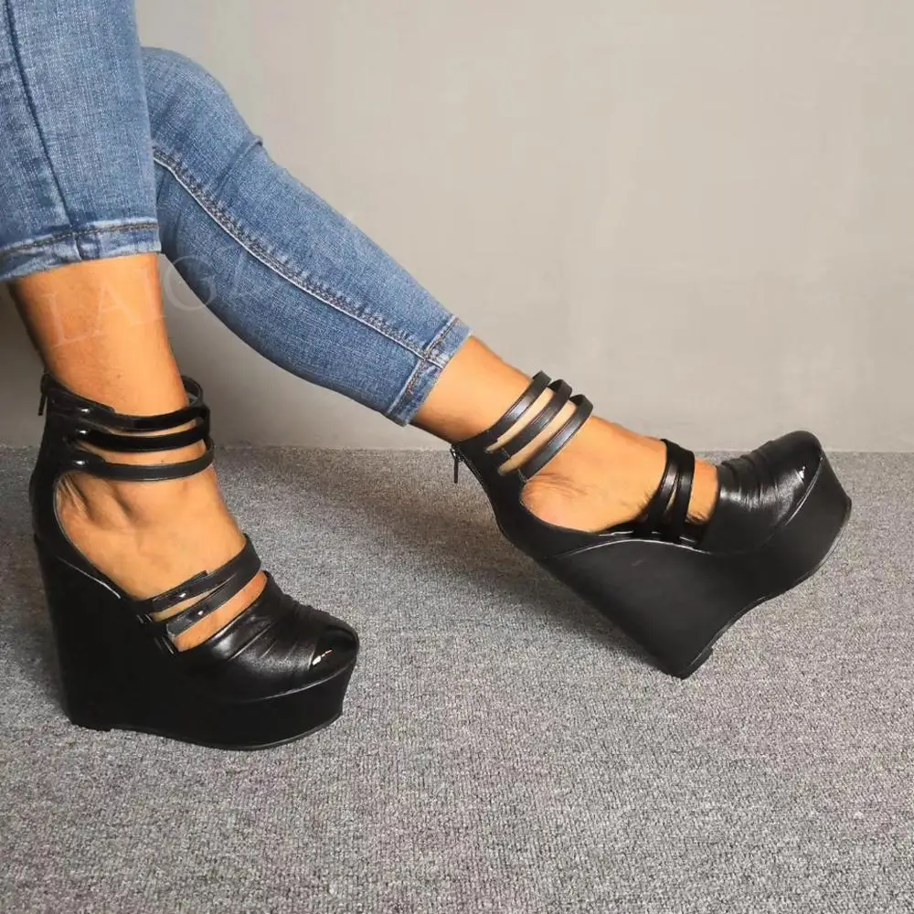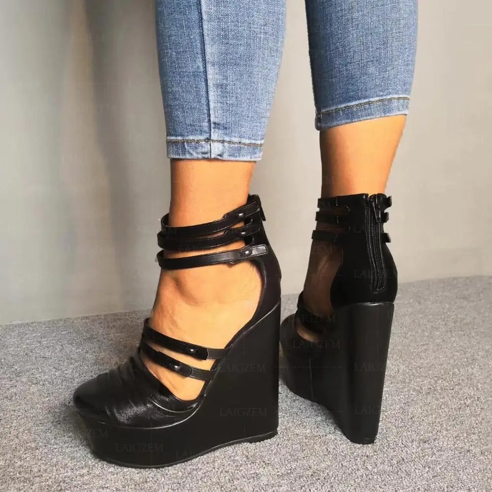 BERZIMER/женские босоножки на танкетке; Туфли-лодочки с ремешком на щиколотке и молнией сзади; Женская обувь; Большие размеры 39, 45, 47, 52