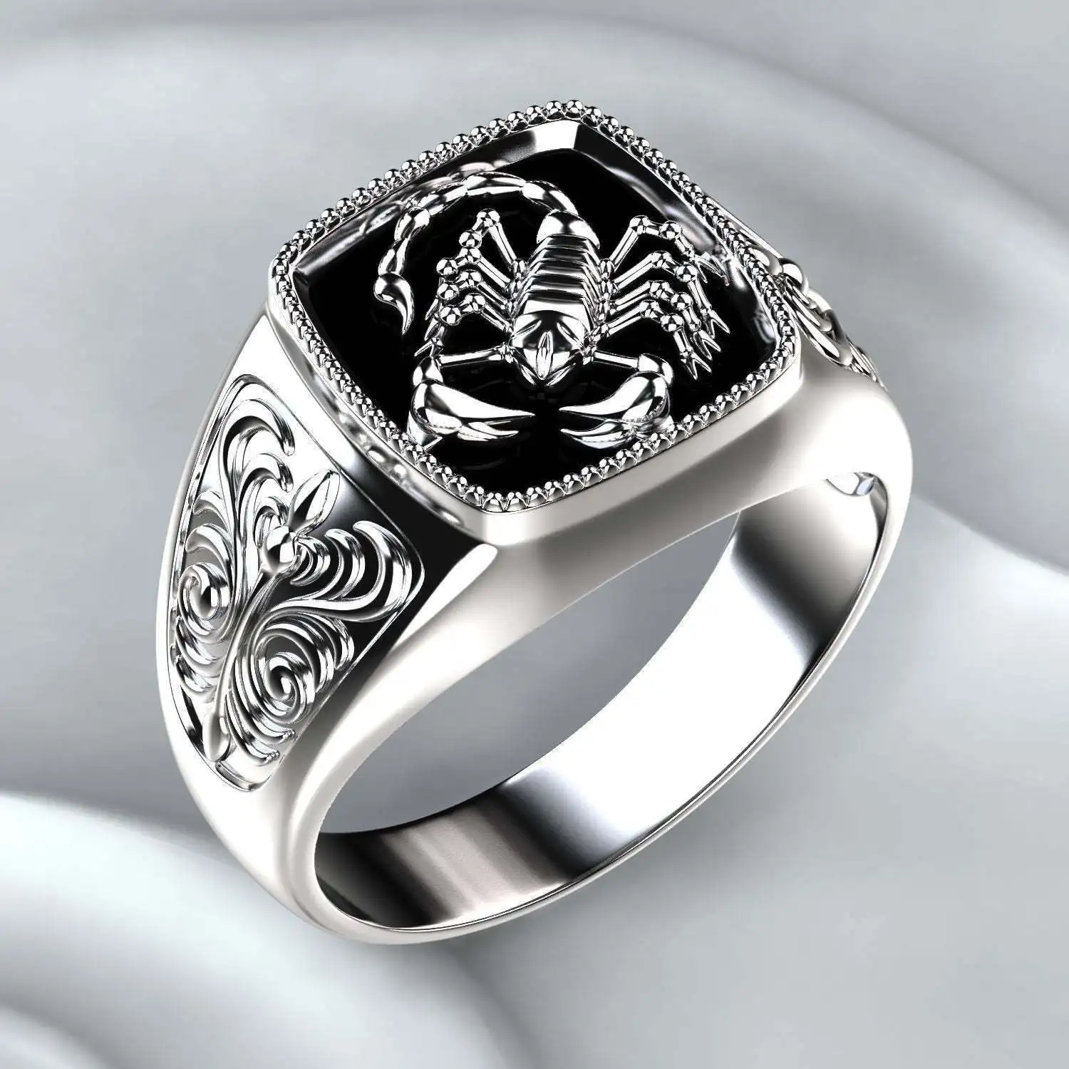 Кольцо мужское в стиле панк, готический тотемный узор скорпиона, стиль ретро, хип-хоп, викингов, ювелирное изделие
