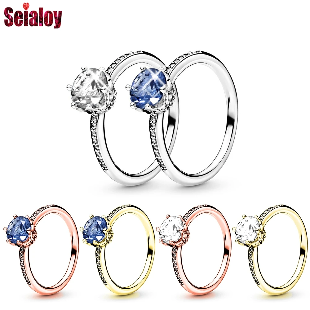 Seialoy, новинка, блестящие кольца с короной из циркона для женщин и мужчин, оригинальный кристалл, свадебное обручальное кольцо, изысканное, для пары, штабелируемое кольцо, ювелирное изделие