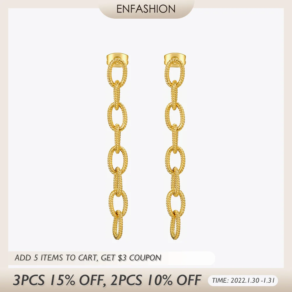 Женские длинные висячие серьги ENFASHION, золотистые висячие серьги из нержавеющей стали, ювелирные изделия, E201160, 2020
