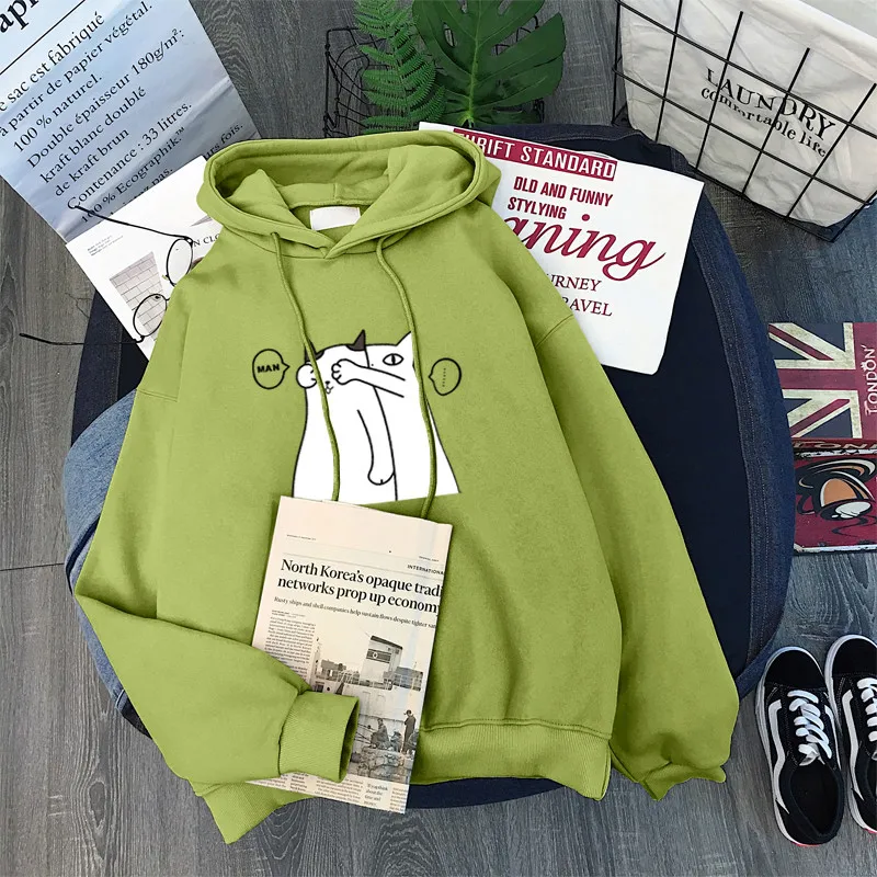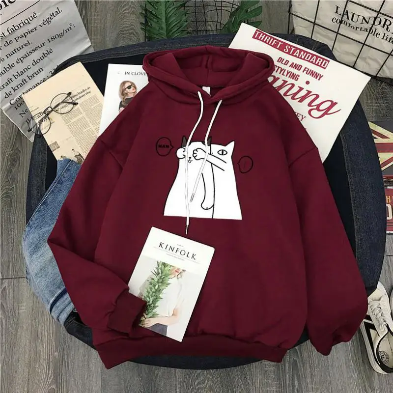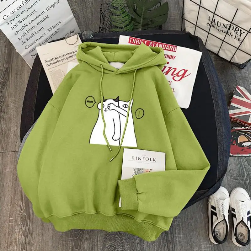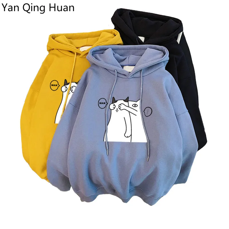 Женская толстовка с капюшоном Yan Qing Huan, свободная кофта с длинным рукавом и мультипликационным принтом, корейский стиль, верхняя одежда на осень и зиму