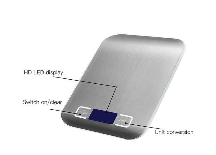 Высококачественный и Цифровой точный баланс Большая платформа из нержавеющей стали Большой ЖК Оснащен высокоточной системой датчиков деформации Большой ЖК-дисплей и отличный датчик нагрузки Автоматический сброс нуля/отключение питания Емкость: 5 кг (11 фунтов) или 10 кг (22 фунтов) Единицы: г унции мл Точность: 1 г Диапазон ошибок: + - 3g Цвета: серебристый Полнофункциональная клавиша: вкл/выкл/тара/ноль Индикатор перегрузки/низкого заряда батареи Большая платформа для взвешивания из нержавеющей стали Питание от батареек 1,5 в * 2 ААА (не входят в комплект) Размер шкалы (Д * Ш * В): 180 мм * 140 мм * 18 мм Размер лотка (Д * Ш) 180 мм * 140 мм Размер экрана (Д * Ш) 40 мм * 18 мм Вес: 300 г