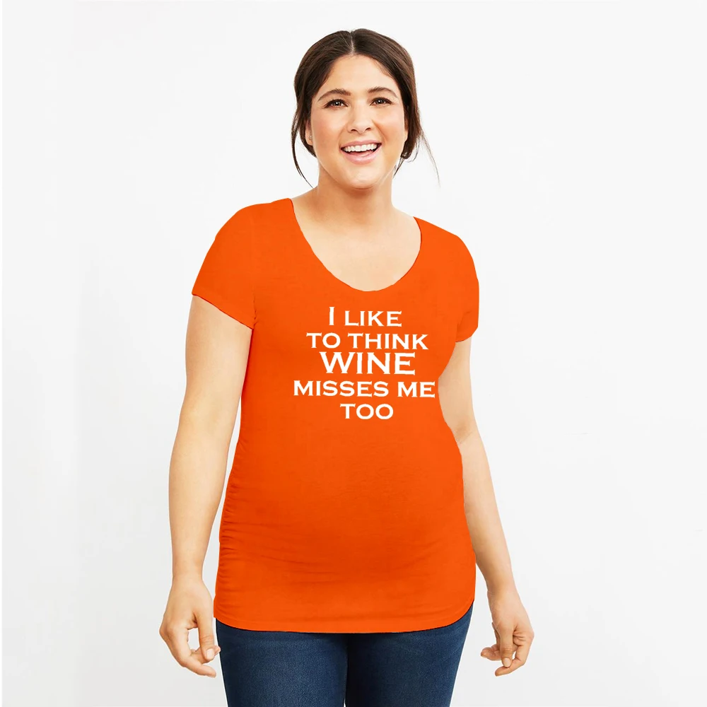 Я люблю думать, что винно скучает по мне, Футболка для беременных с забавным принтом, Футболка для беременных, топы для беременных, футболка, одежда Anouncement