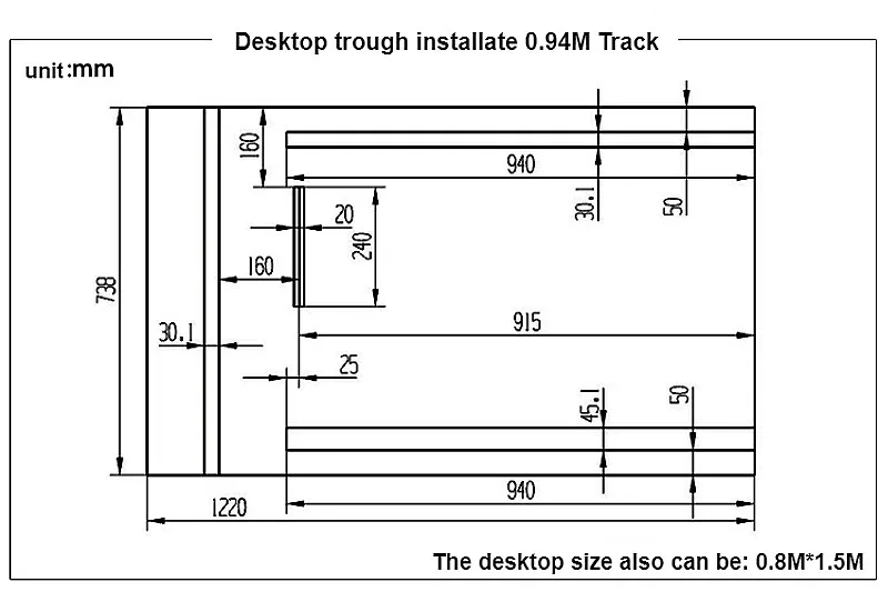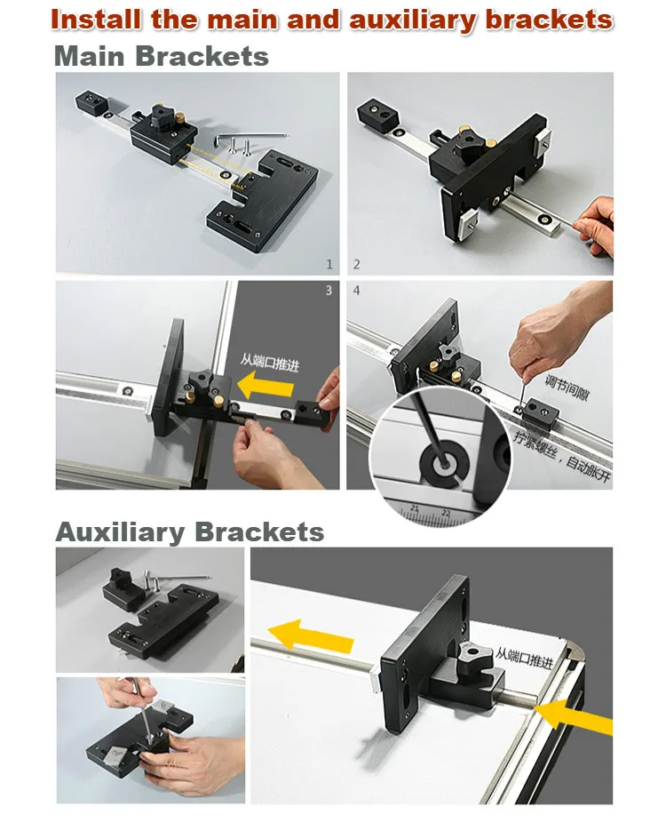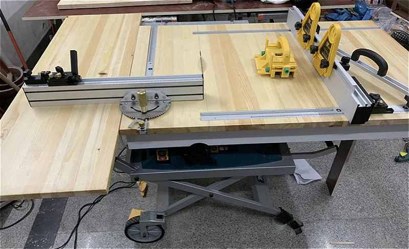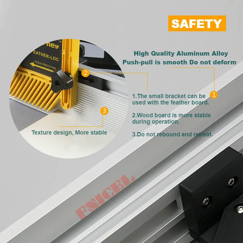 Система ограждения для настольной пилы Система поставляется с: 1 шт. Забор длинной 800 мм (1000 мм), высотой 80 мм и шириной 45 мм. 1 шт 940 мм Т-образная дорога, со шкалой измерения 12,8 мм Высота и 45 мм ширина. 1 шт 940 мм обычная Т-образная дорога, 12,8 мм Высота и 30 мм ширина. 1 шт Т-трек 690 мм Обычный Т-трек, который идет на забор для установки перьевых досок. 1 шт. Т-образная штанга и аксессуары для крепления на забор и микрорегулировочные аксессуары и шурупы. Эффективный ход забора составляет 750 мм.