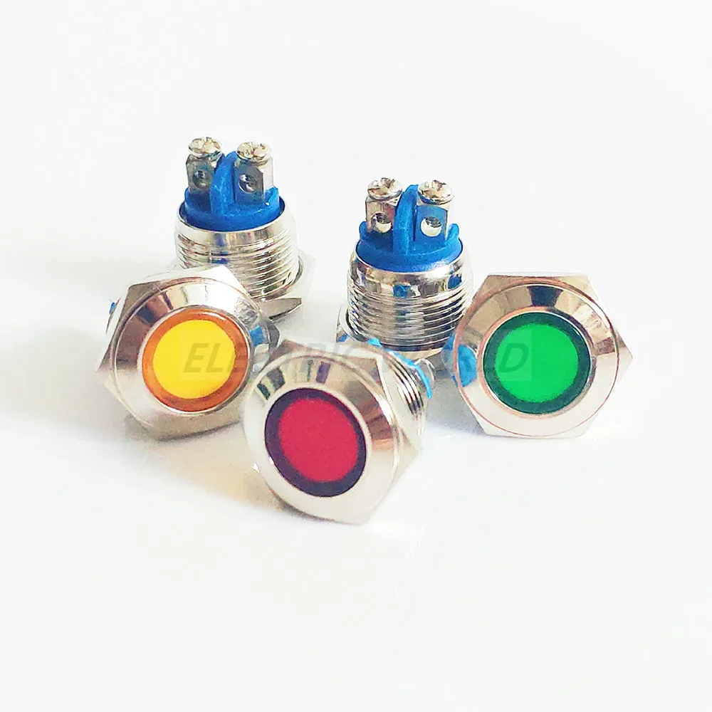 Светосветильник индикатор металлический, 16 мм, водонепроницаемый, светодиодная лампочка-индикатор, 5 В, 12 В, 24 В, 220 В
