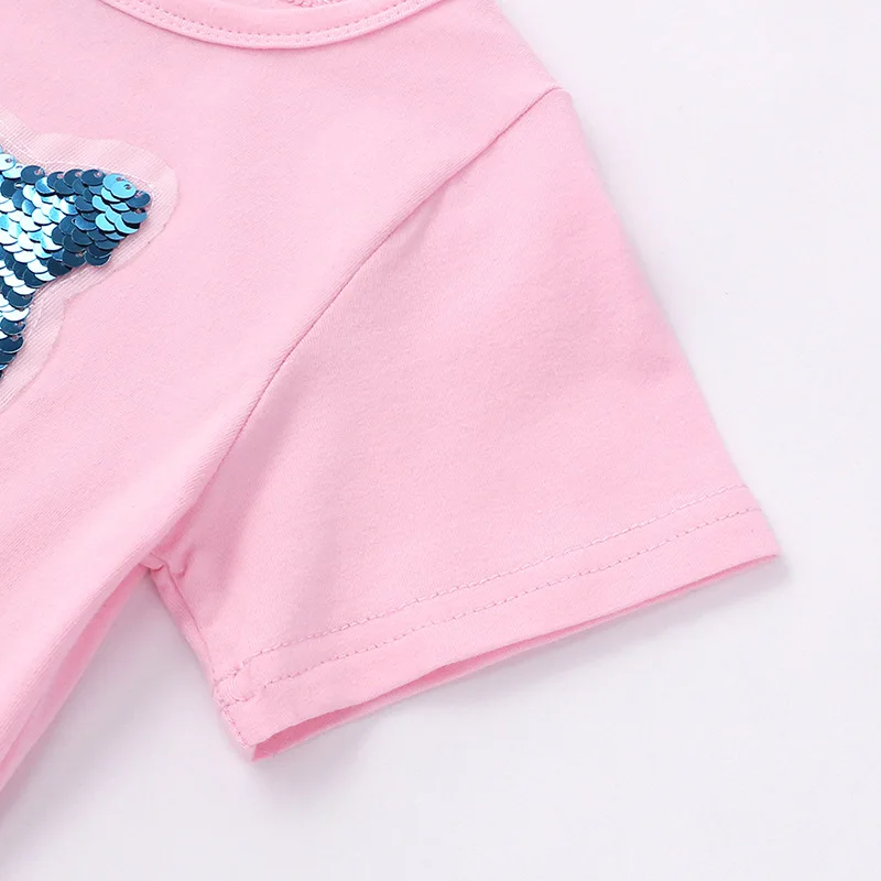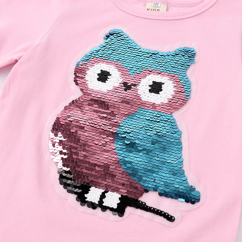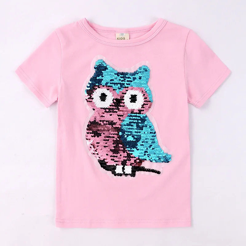 Летняя футболка для девочек, хлопковая одежда, волшебная футболка с блестками, Повседневная модная футболка с изображением совы, детские топы, футболка