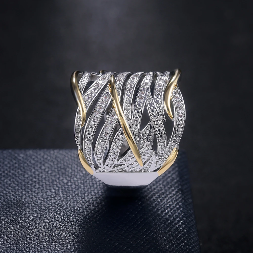 Кольцо женское двухцветное металлическое, с вырезами, геометрической формы