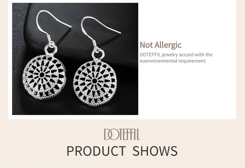 Круглые серьги DOTEFFIL из стерлингового серебра 925 пробы для женщин Свадебные украшения ретро серьги