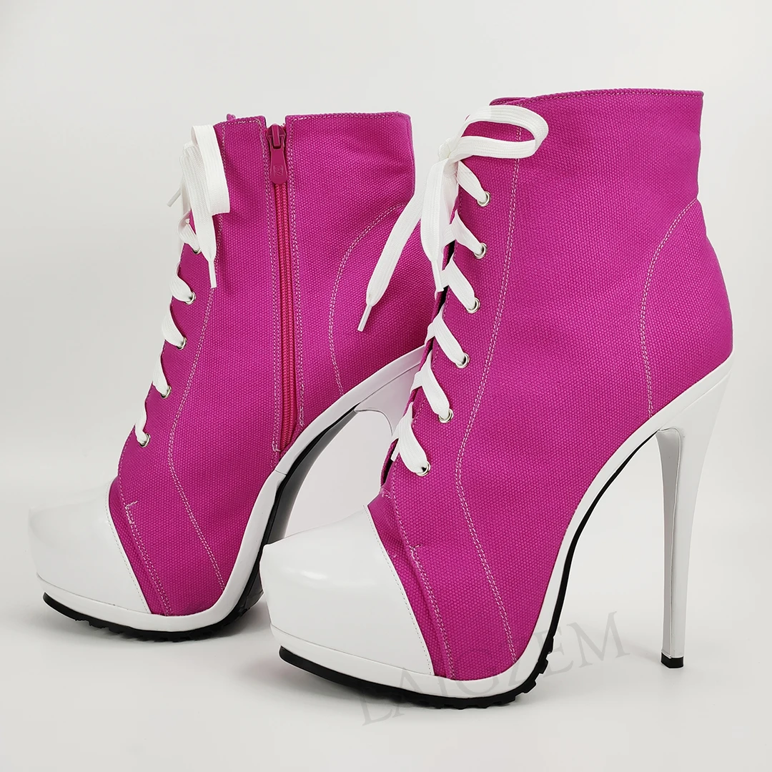 BERZIMER/ботильоны из парусины с круглым носком на шпильке; Ботинки на шнуровке с боковой молнией; Botas Zapatos; Женская обувь; Большие размеры 45, 47, 52