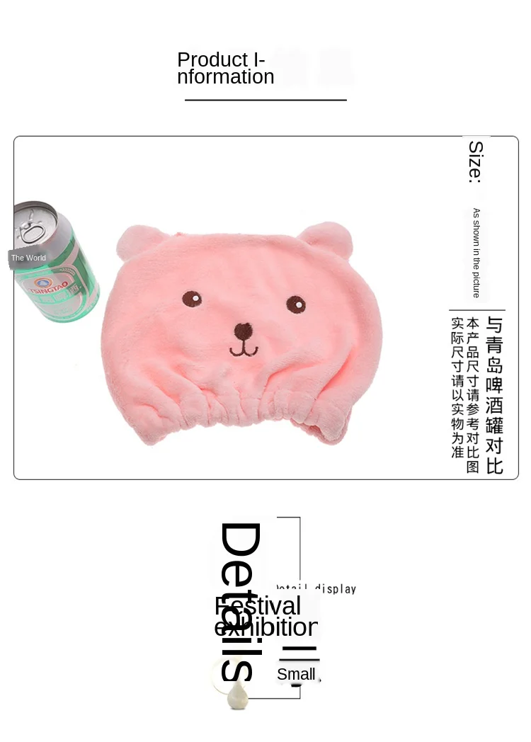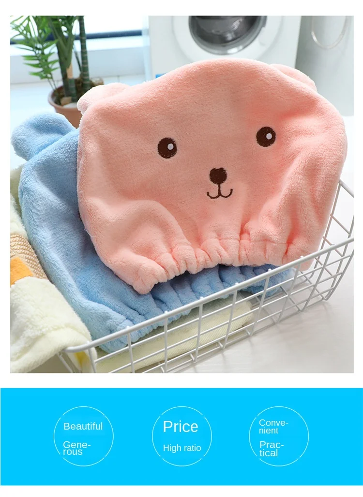 Шапочка для сушки волос с мультяшным медведем, супервпитывающая быстросохнущая ткань из микрофибры для вытирания волос