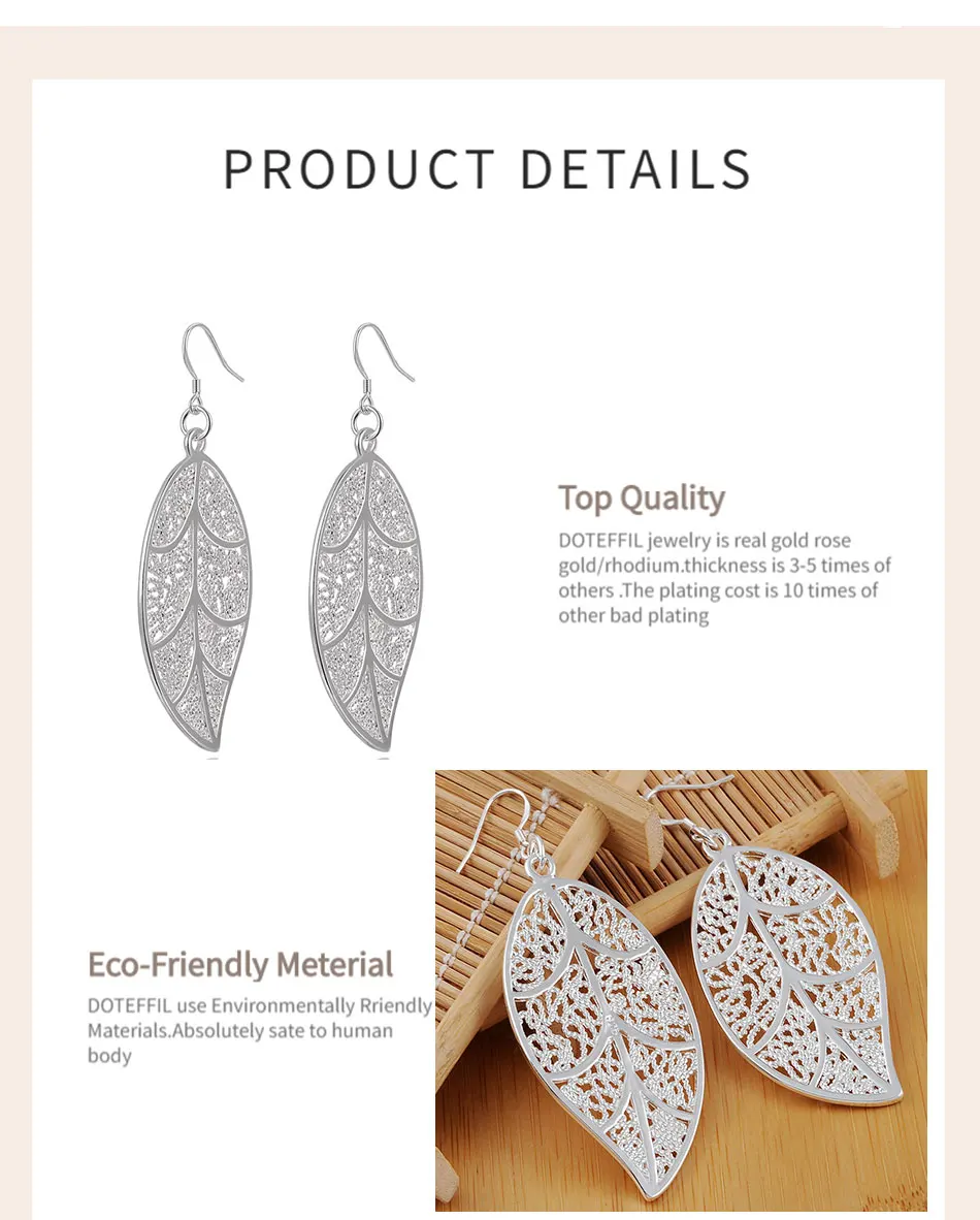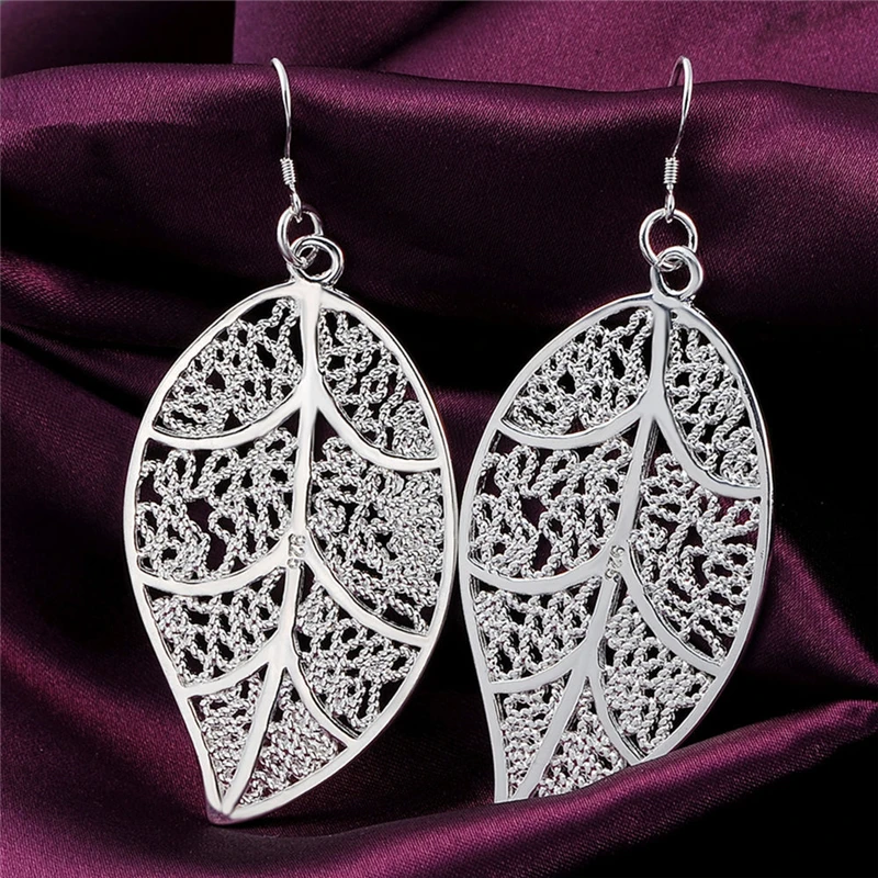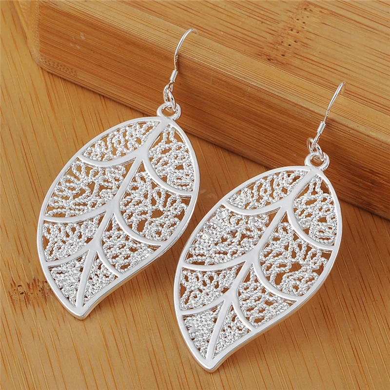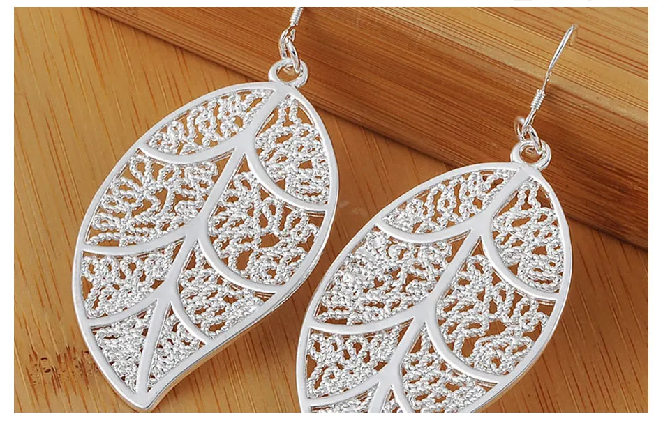 Женские серьги-подвески в виде листьев, из серебра 925 пробы