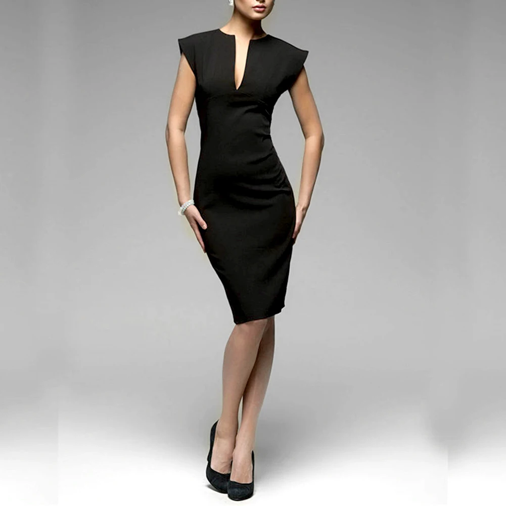 Особенности: глубокий v-образный вырез, сексуальный, удобный, приталенный крой, облегающее платье, элегантное