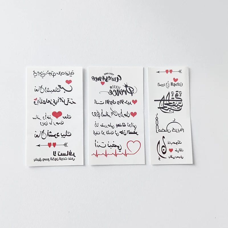 Водостойкая временная татуировка, наклейка с арабскими буквами, биение сердца любовный узор, личность, поддельные татуировки флеш-тату для женщин, мужчин