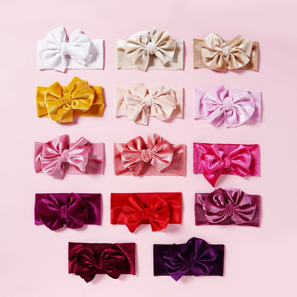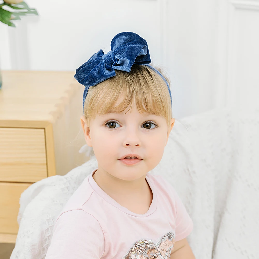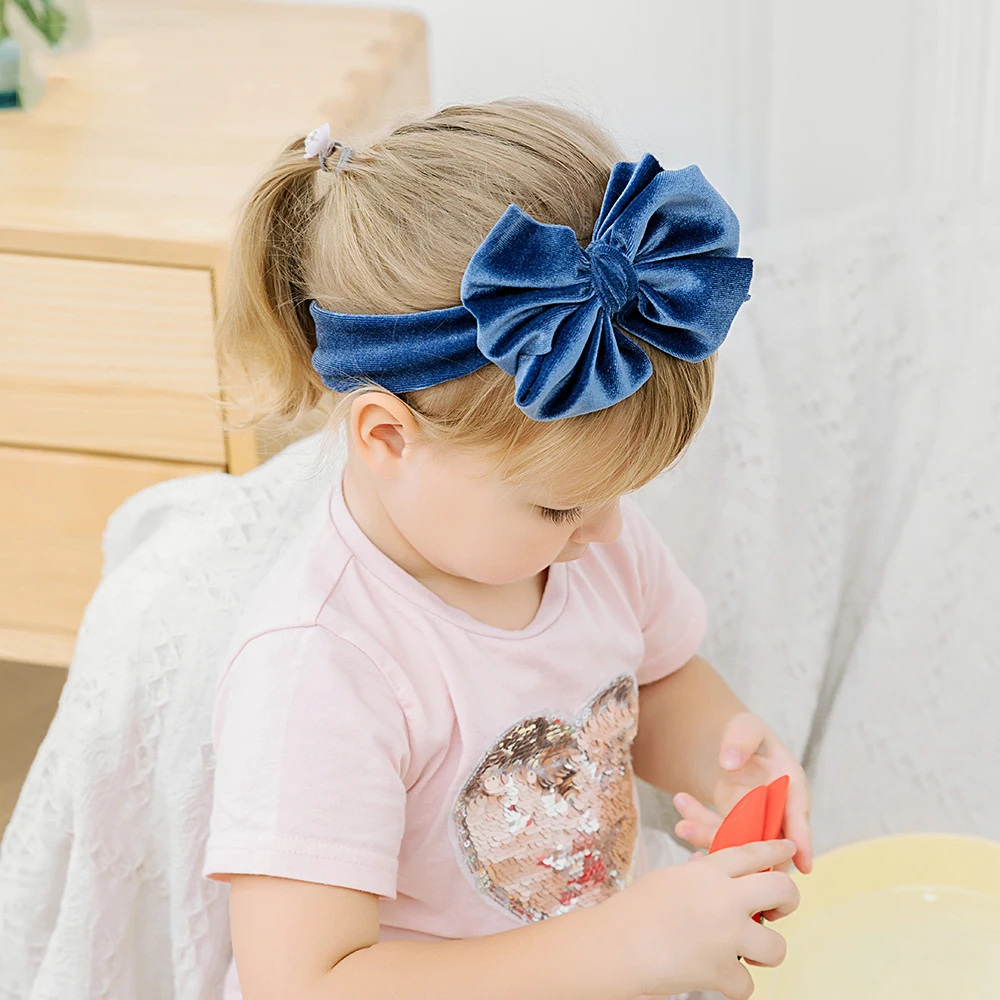 1 шт., повязка на голову для маленьких девочек, милая повязка на голову с большим бантом, зимняя лента для волос принцессы, мягкие бархатные банданы, аксессуары для волос для малышей