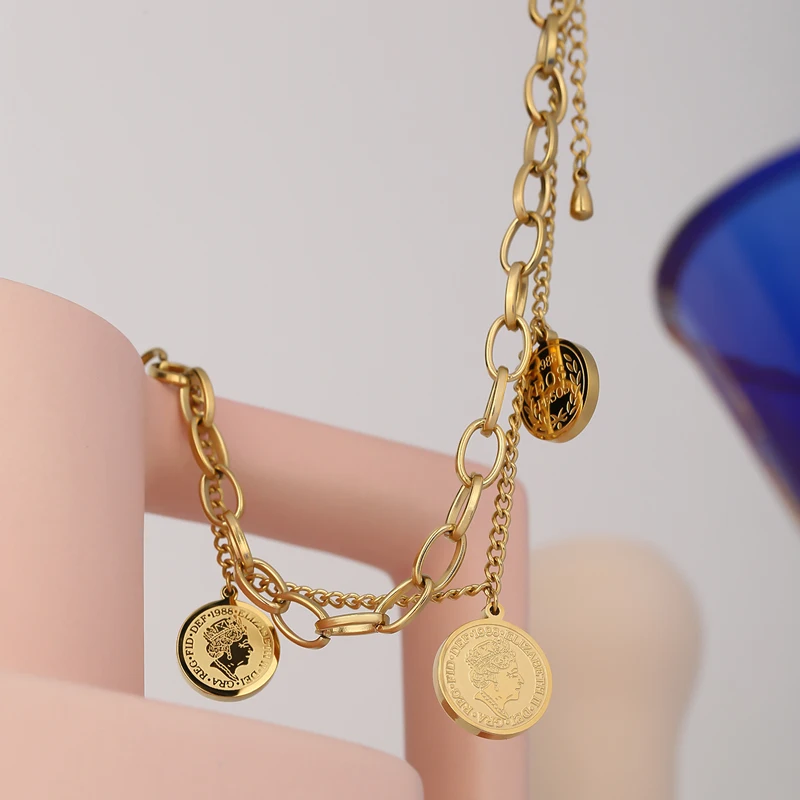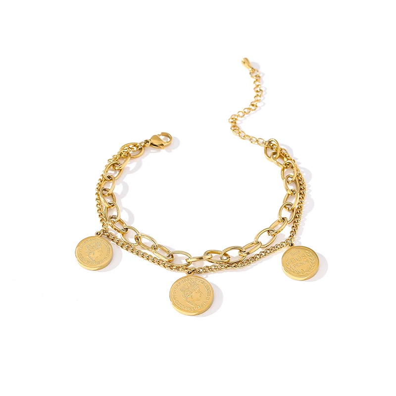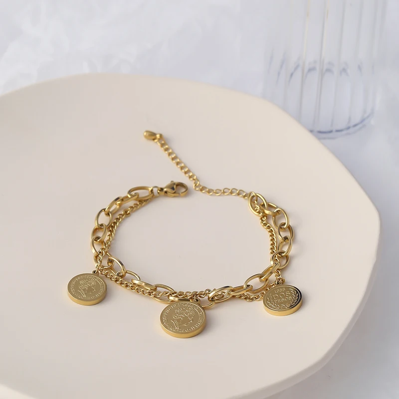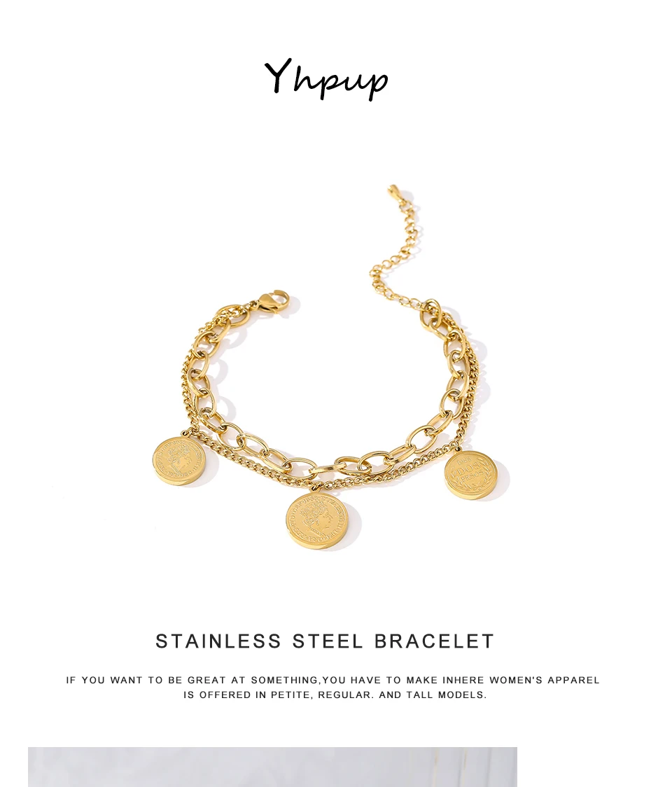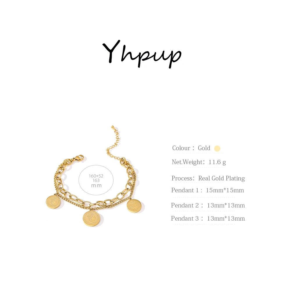 Yhpup стильный портрет Круглый браслет с подвеской ювелирные изделия из нержавеющей стали для женщин очаровательный металлический золотой браслет аксессуары