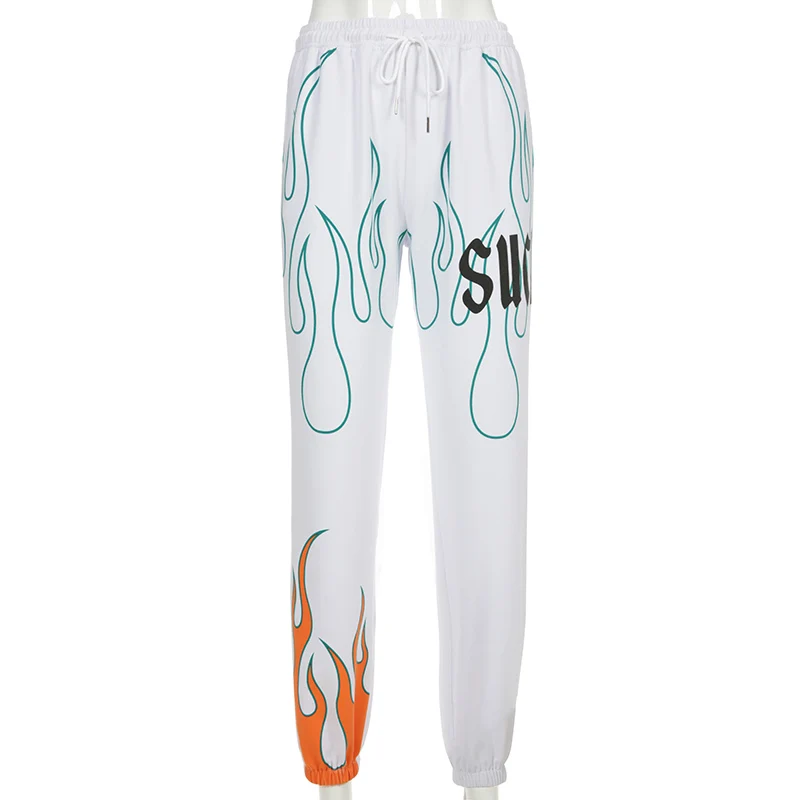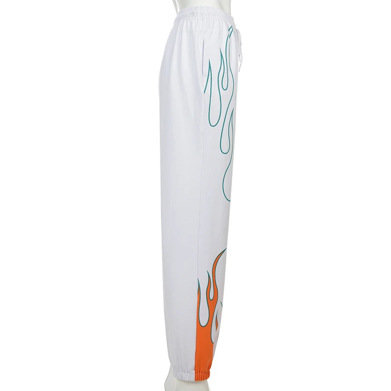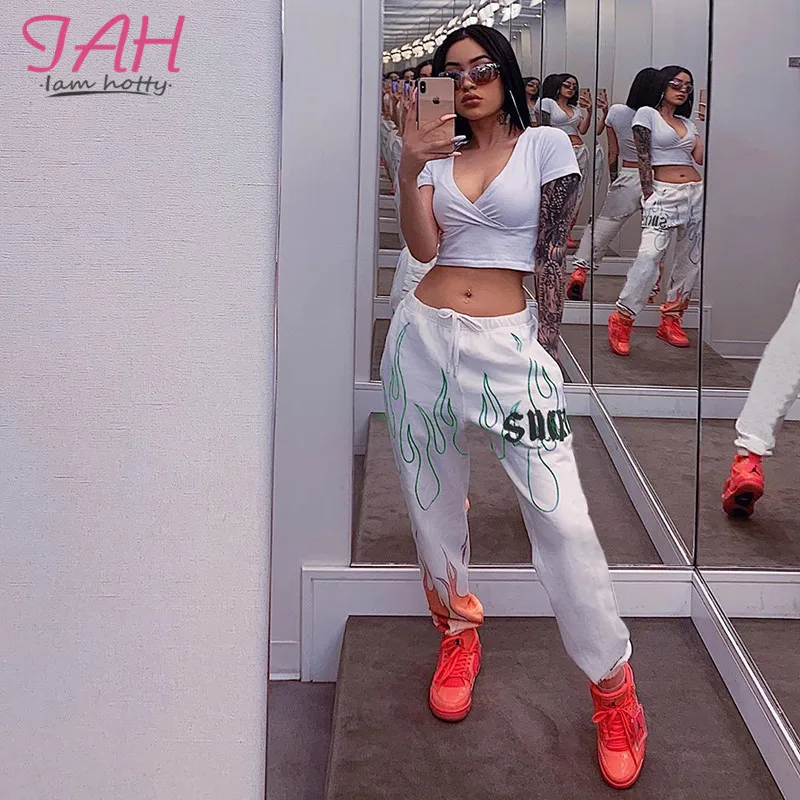 Летние джоггеры IAMHOTTY с принтом пламени и букв, женские повседневные уличные спортивные брюки, женские брюки-карго с высокой талией, женская одежда, брюки