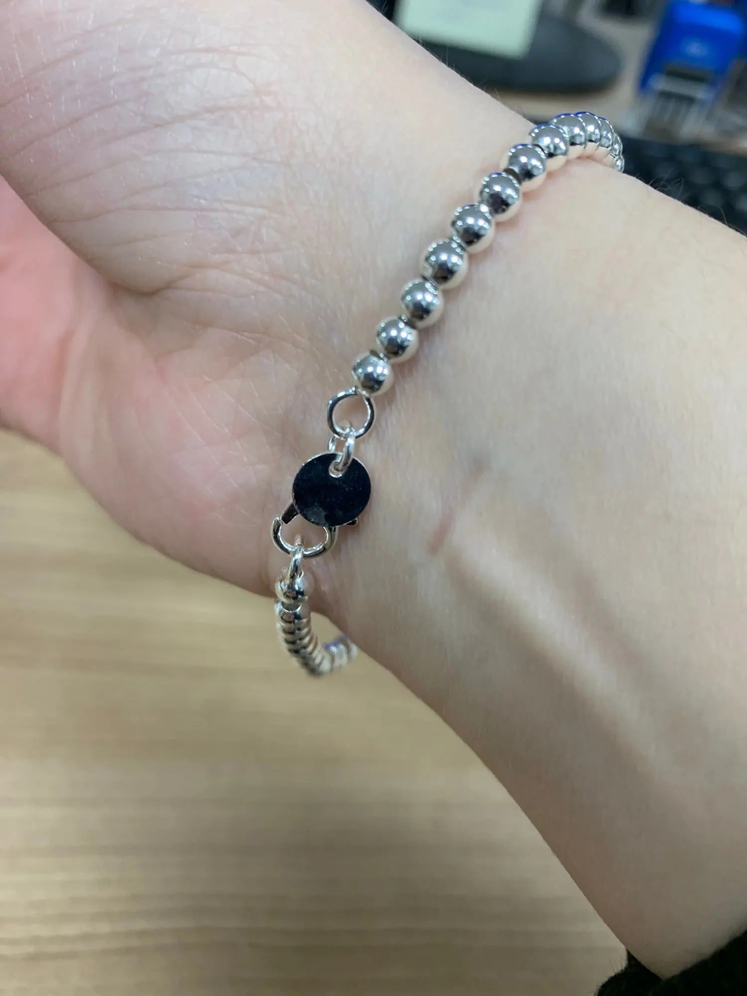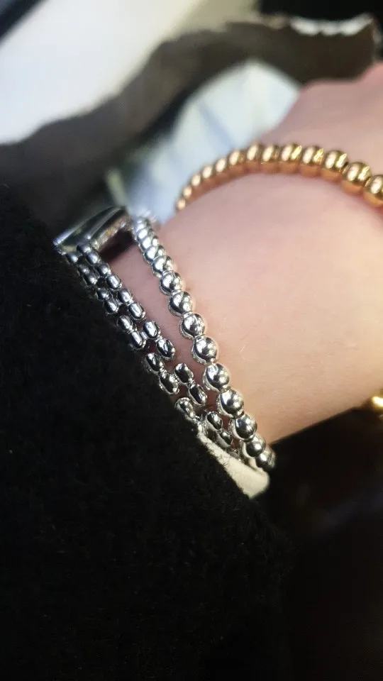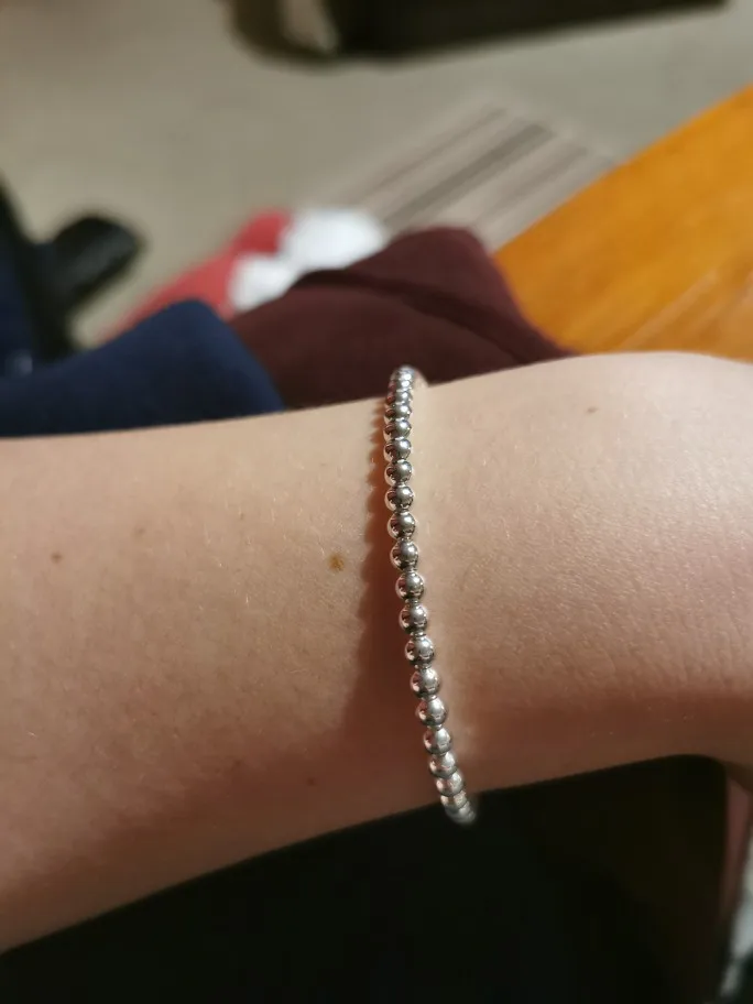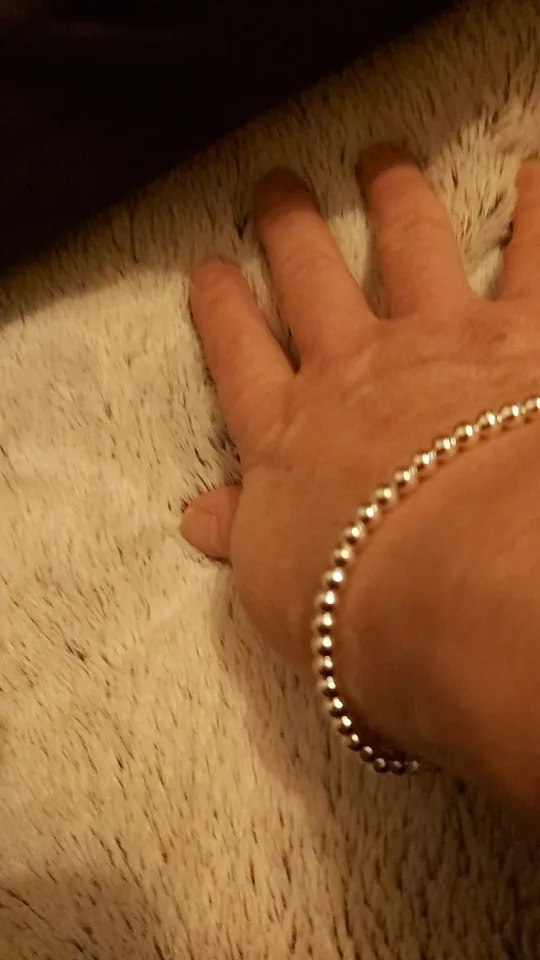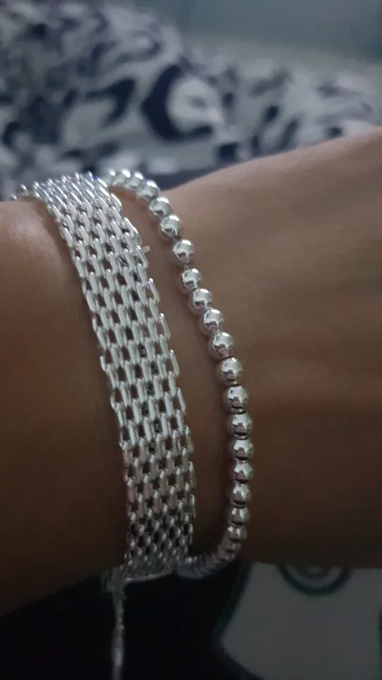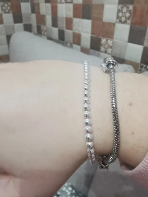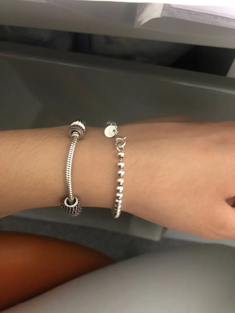 Он очень милый и действительно красивый, большой для моего запястья, но может найти способ сделать его меньше. Выглядит действительно серебристым, надеюсь, что это не разочарует меня, и поэтому я закажу больше для своих подружек. Выглядит как Тиффани и действительно лучше! Я жду его около месяца, но это нормально.