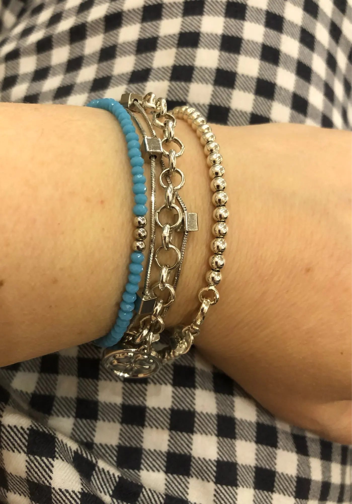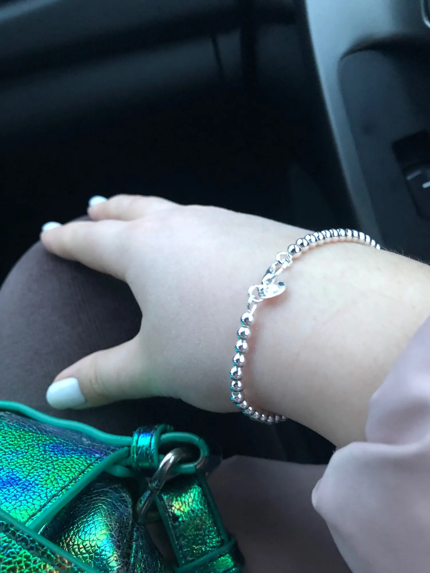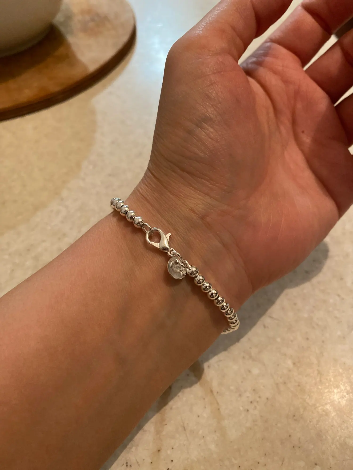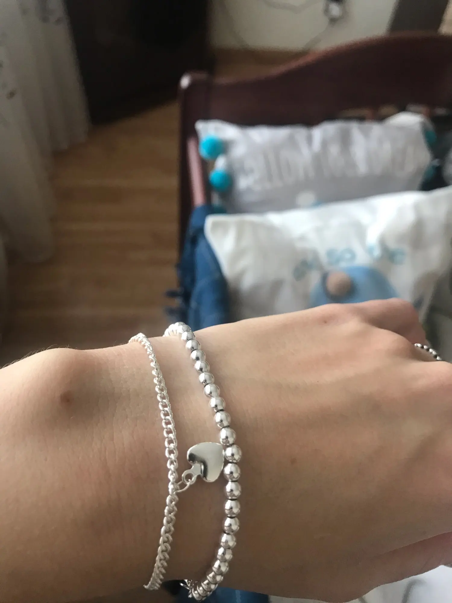 Он очень милый и действительно красивый, большой для моего запястья, но может найти способ сделать его меньше. Выглядит действительно серебристым, надеюсь, что это не разочарует меня, и поэтому я закажу больше для своих подружек. Выглядит как Тиффани и действительно лучше! Я жду его около месяца, но это нормально.