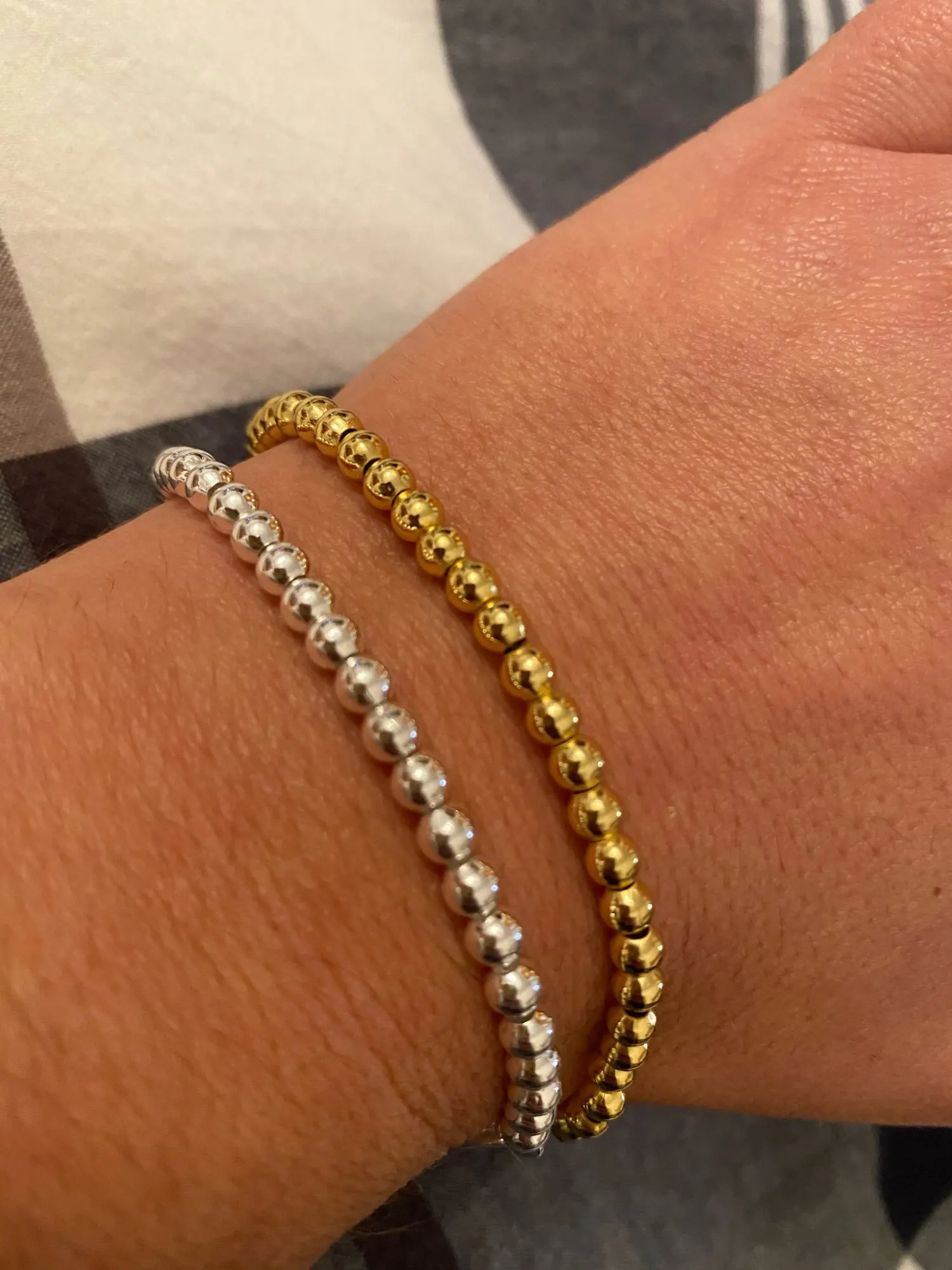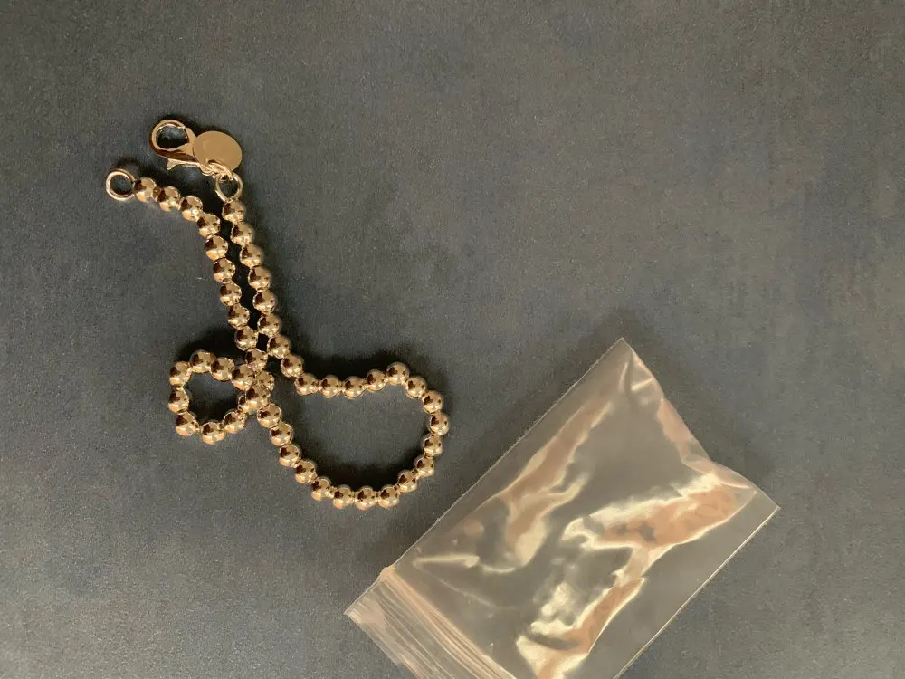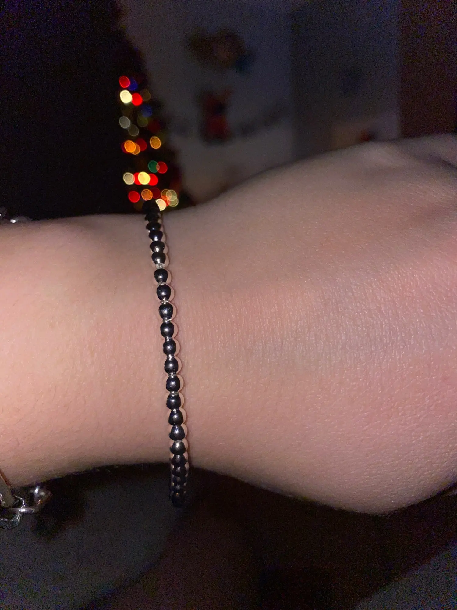 Посылки объединили в одну, поэтому приехал быстро, буквально две недели. На мою кисть руки велик. Думаю, как можно уменьшить. Пока вариантов нет, потому что там идёт металлическая основа, на которую надеты эти бусины, а концы припаяны. Похоже, носить не смогу, а жаль. Выглядит красиво.