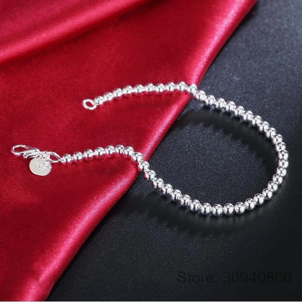 Браслет-цепочка Женский, из 100% серебра 925 пробы, с бусинами 4 мм, 20 см