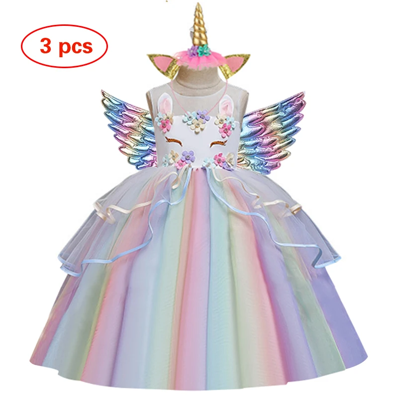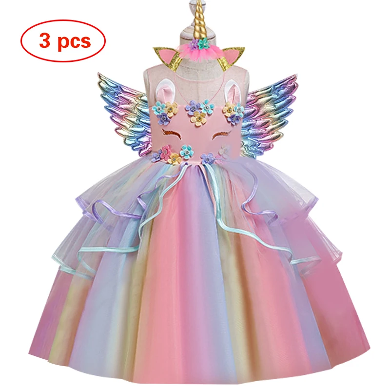 Новинка, платье с цветочным принтом для девочек на свадьбу, коктейльную вечеринку, платье с принтом единорога, официальное платье для вечеринки в честь Дня рождения для девочек, платье с единорогом