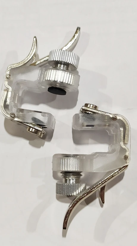 Пришли быстрее чем ожидалось, качество отличное только сборка немного хромает, сделаны из металла в месте контакта резиновые накладки, тригеры пришли со сменнфми накладками, качество 5 из 5 советую