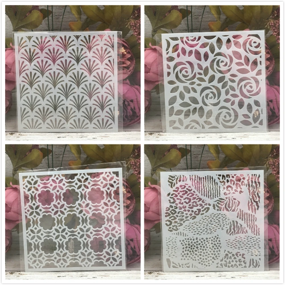 4 шт.компл. 15 см леопардовая Цветочная Текстура DIY Многослойные трафареты настенная живопись раскраска для скрапбукинга тиснильный альбом декоративный шаблон