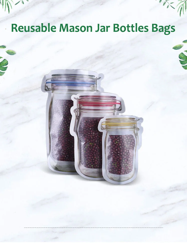 Многоразовые бутылки для Мейсона, сумки для свежих продуктов, кухонный органайзер, орехи, конфеты, печенье, сумка, уплотнение, закуски, на молнии, запечатанные сумки для хранения