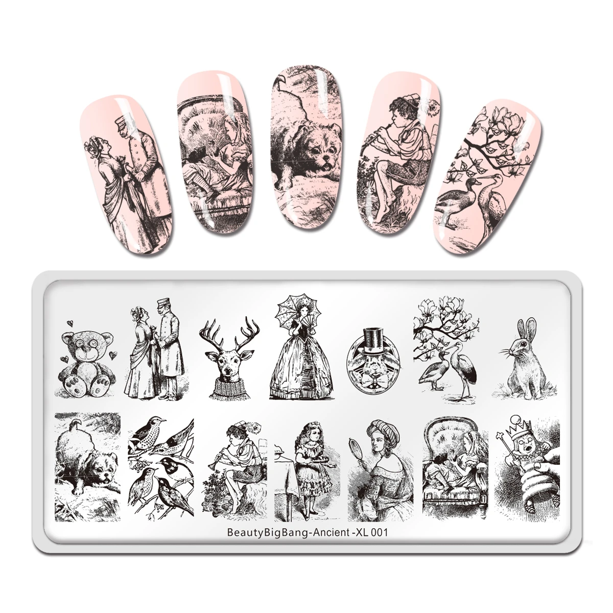 Пластины BeautyBigbang для стемпинга ногтей, медведь, влюбленная, птица, кролик, собака, шаблон для дизайна ногтей, трафарет для штампов, старинные XL-001