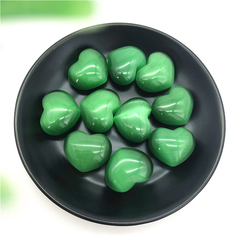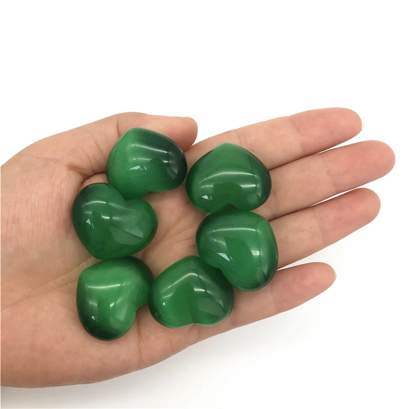 Красивый зеленый камень кошачий глаз в форме сердца хрустальные камни драгоценные камни лечебные камни подарки Декор натуральные камни и минералы