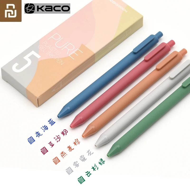 Гелевая ручка Youpin 5 шт.упак. KACOGREEN в стиле морандиш, в стиле ретро, с s-знаком, цветные чернила, макарон, черные чернила, 0,5 мм, ручка для школы и офиса