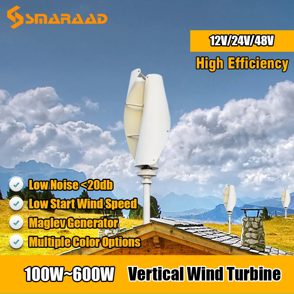 Ветряная мельница с бесплатной энергией, вертикальная ветряная турбина 300 Вт 400 Вт 600 Вт 12 В 24 в 48 в с MPPT контроллером для дома