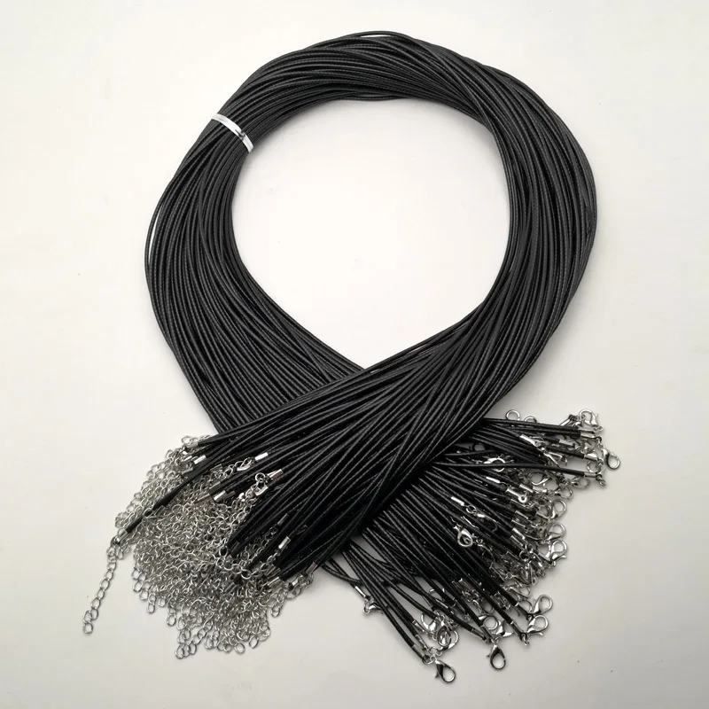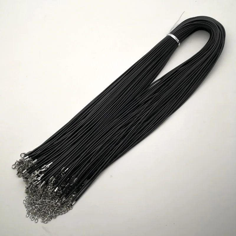 Модная 2,0 мм 45 см 60 см 70 см + 5 см черная Вощеная Веревка Карабин Застежка ожерелье шнурок ювелирные изделия Кулоны шнуры 100 шт.лот Бесплатная доставка