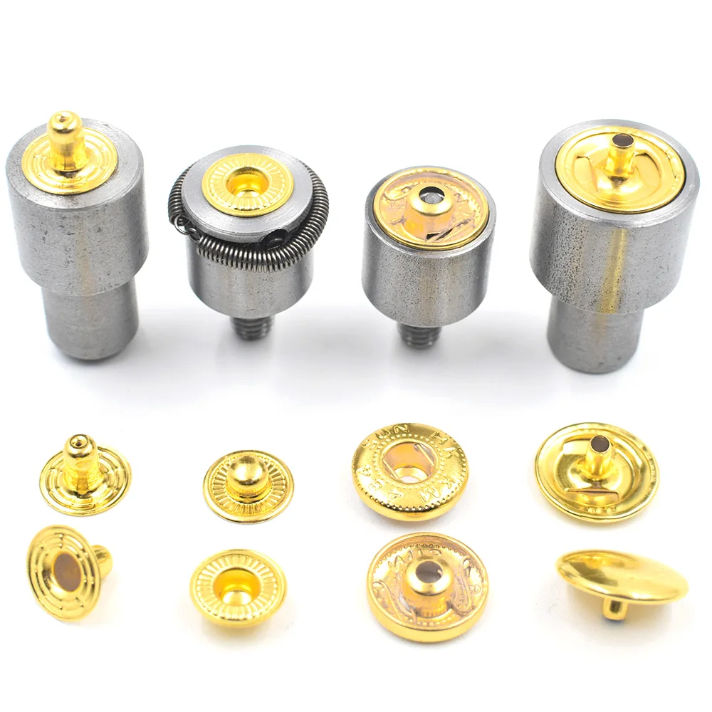 Металлические кнопки-оснастки, 50 комплектов, золотистыебронзовые металлические кнопки 10 мм12,5 мм15 мм, 1 комплект, подходящая для интерфейса M6 форма для одежды, инструмент для установки DIY.