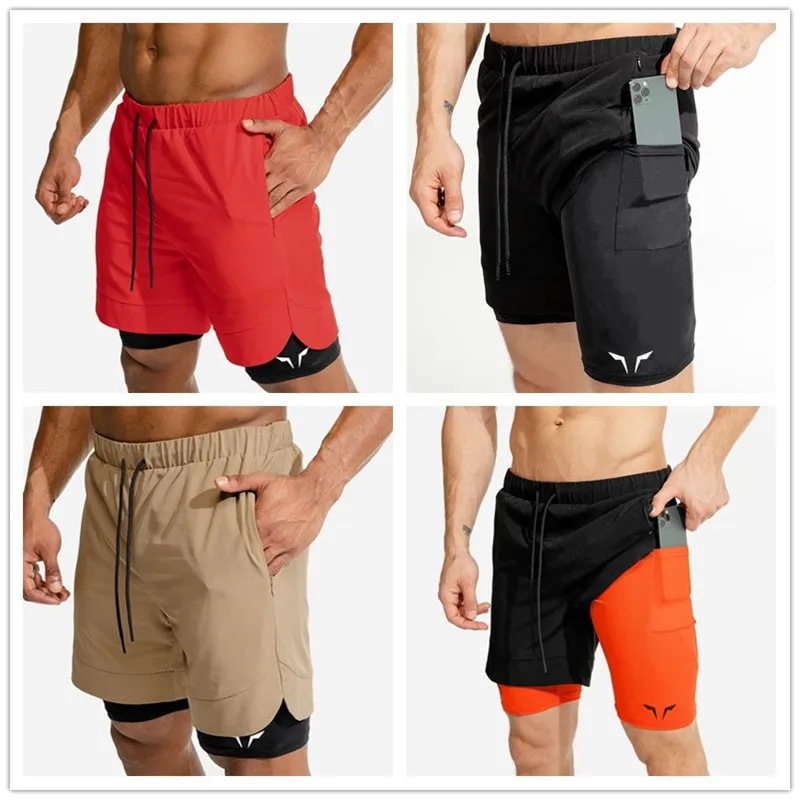 Шорты мужские спортивные 2 в 1, дышащие двухслойные, для бега, фитнеса, бодибилдинга, тренировок, 2022