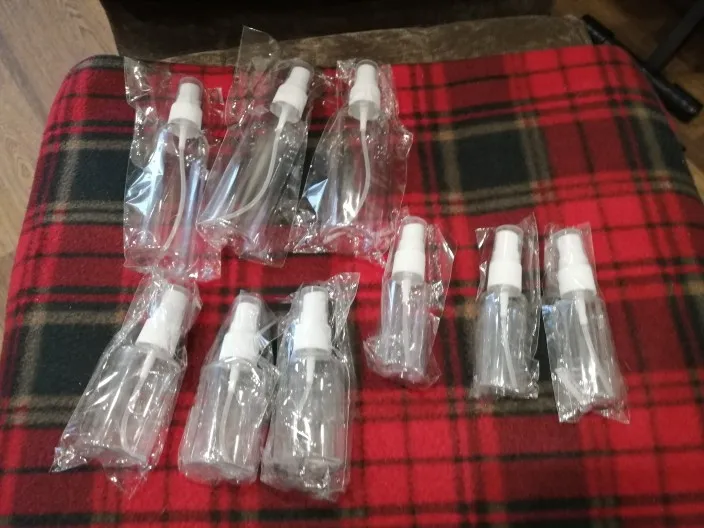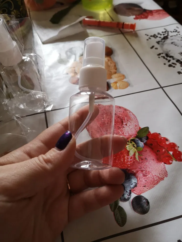 Просто бутылочки. Но ехали больше двух месяцев. Проще купить антисептик в таком же распылителе.