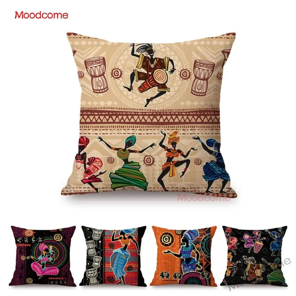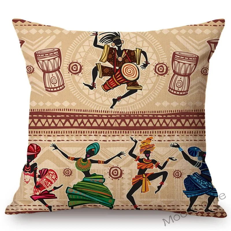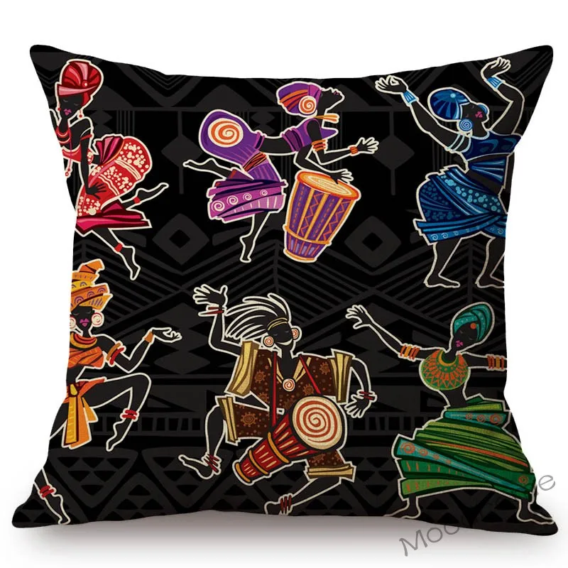 African Cartoon Abstract Dancing Cheerful Carnival Decoration Pillow