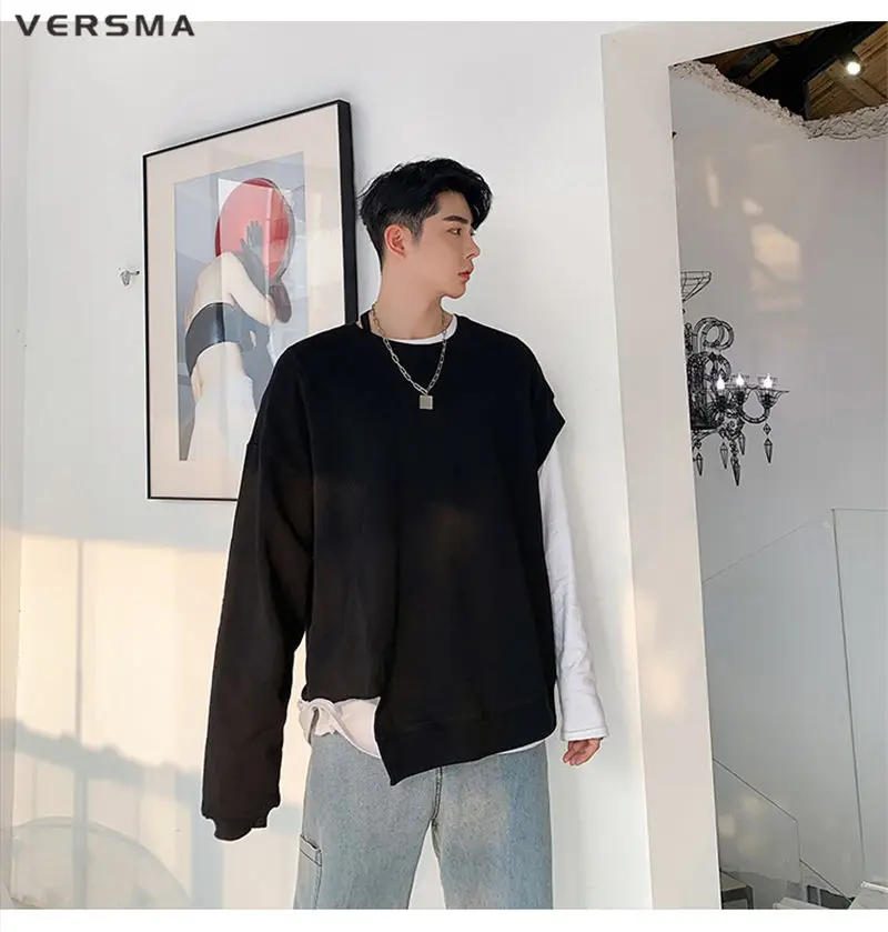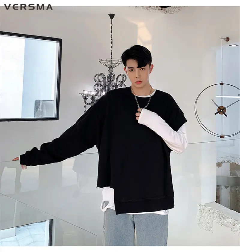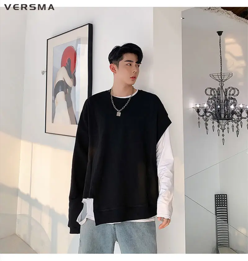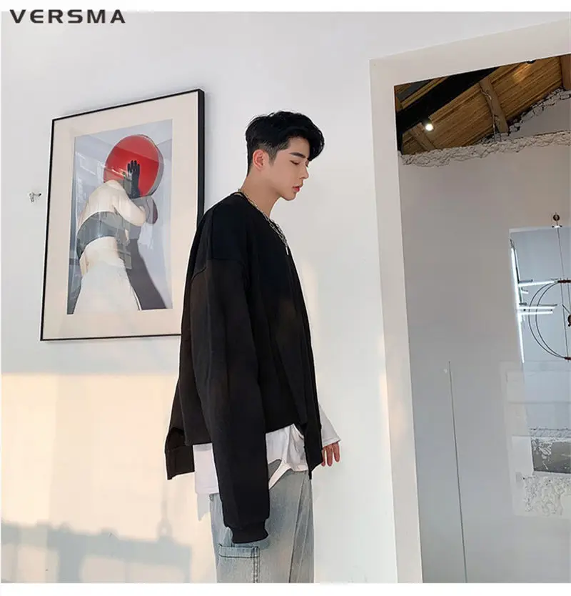 Мужской винтажный готический костюм VERSMA, в стиле Харадзюку, большого размера, в стиле хип-хоп, уличная одежда, однотонная тостовка с капюшоном