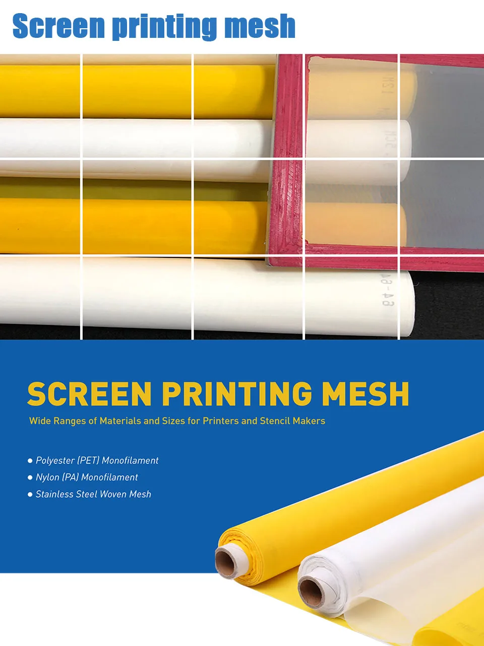 Полиэфирная сетка для трафаретов/производитель трафаретов и принтеров полиэфирная сетка для мононити является наиболее широко используемой сеткой для трафаретов для текстильной, стеклянной, керамической, электронной и солнечной промышленности. Он обеспечивает отличные воспроизводимые результаты печати и исключительное и точное качество изображения и долговечность. Кроме того, широкий диапазон отсчетов сетки для различных печатных подложек может удовлетворить ваши требования к печати.